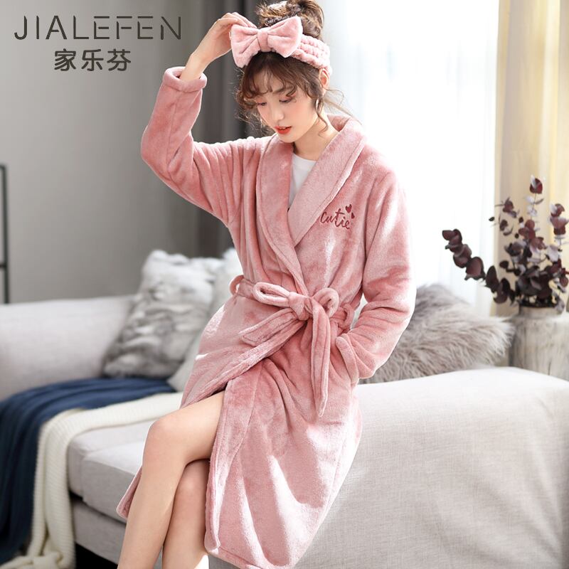 ナイトガウンレディースパジャマ秋冬ロングコーラルベルベット濃厚プラスベルベット暖かさ甘くて素敵なバスローブモーニングローブバージョン jial26190459933