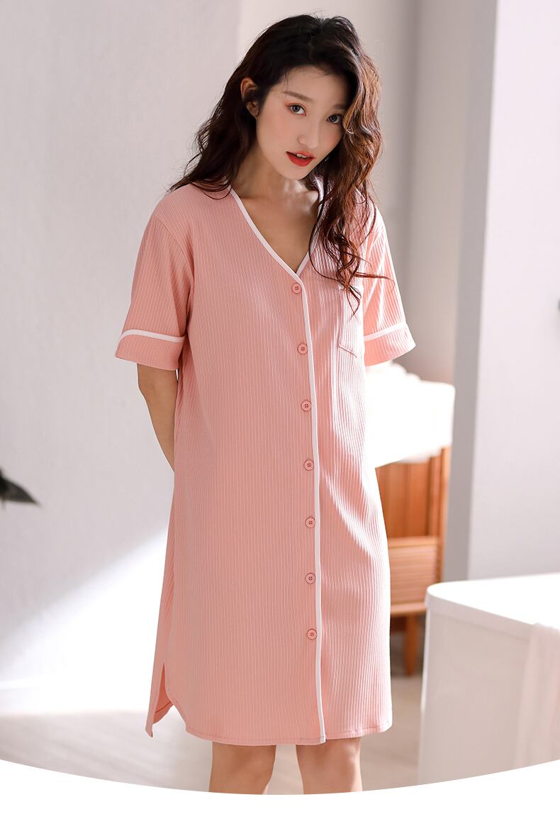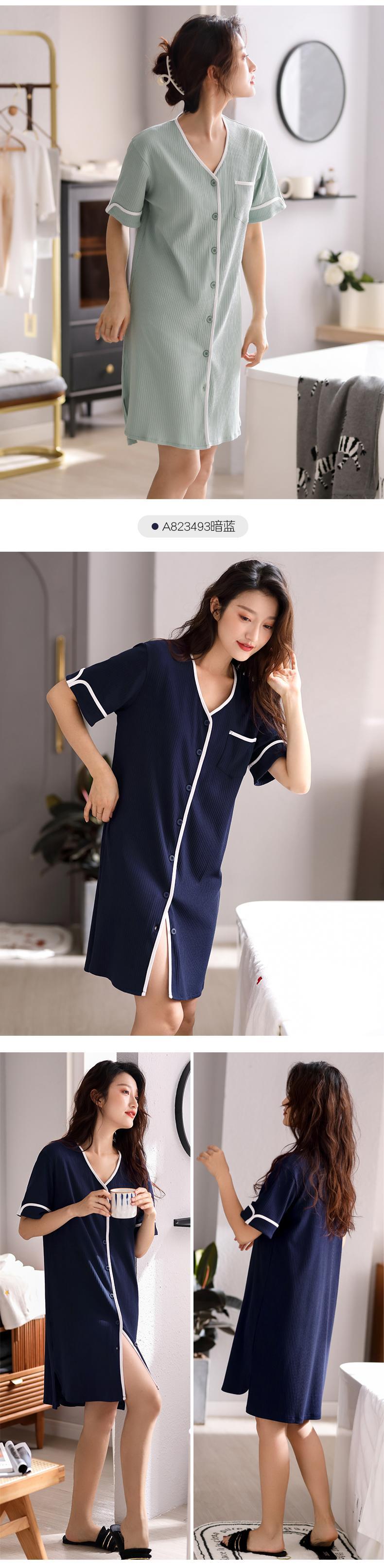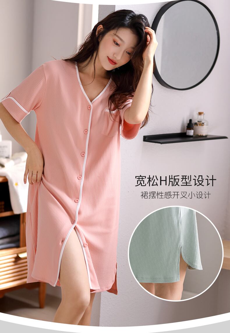 2021年新作ナイトスカートレディースパジャマ夏半袖夏薄シャツカーディガンロングバージョンハイセンス jial90303914921