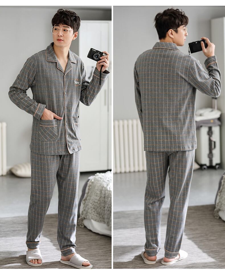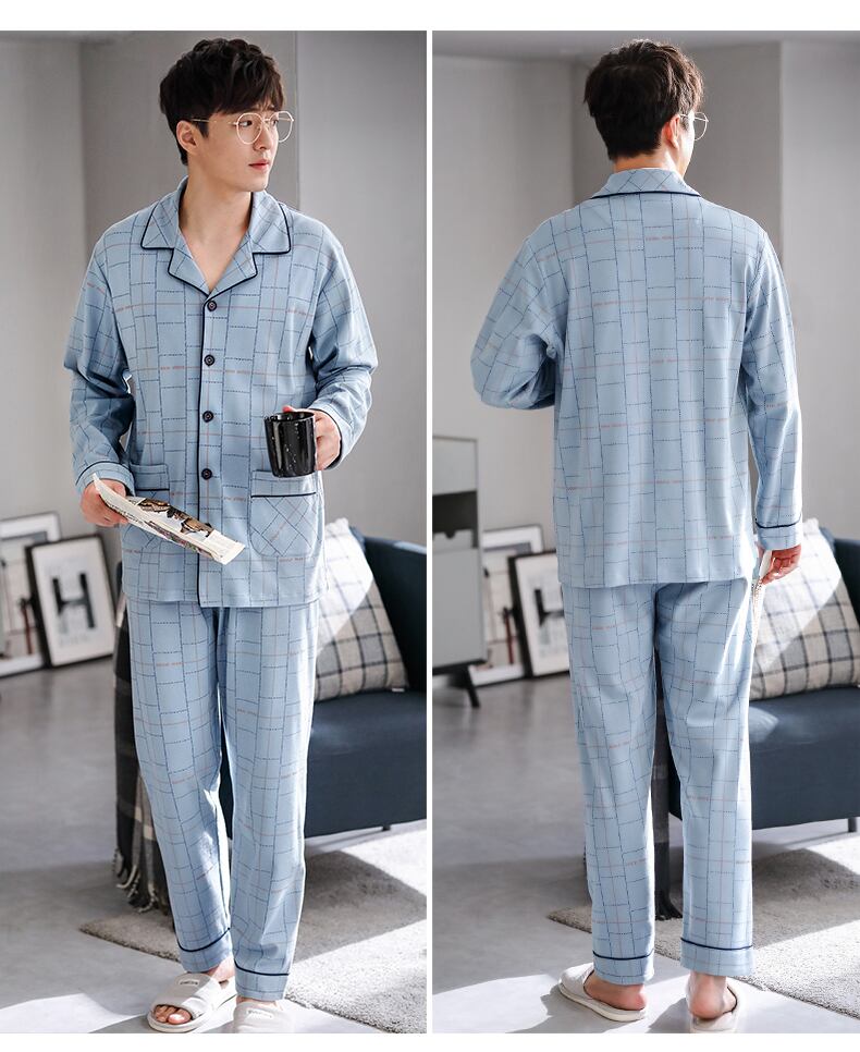 パジャマメンズ春秋モデル秋コットン長袖家庭服コットンメンズ秋冬モデル冬薄モデルメンズスーツ jial67193492007