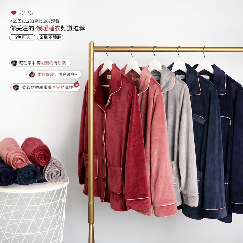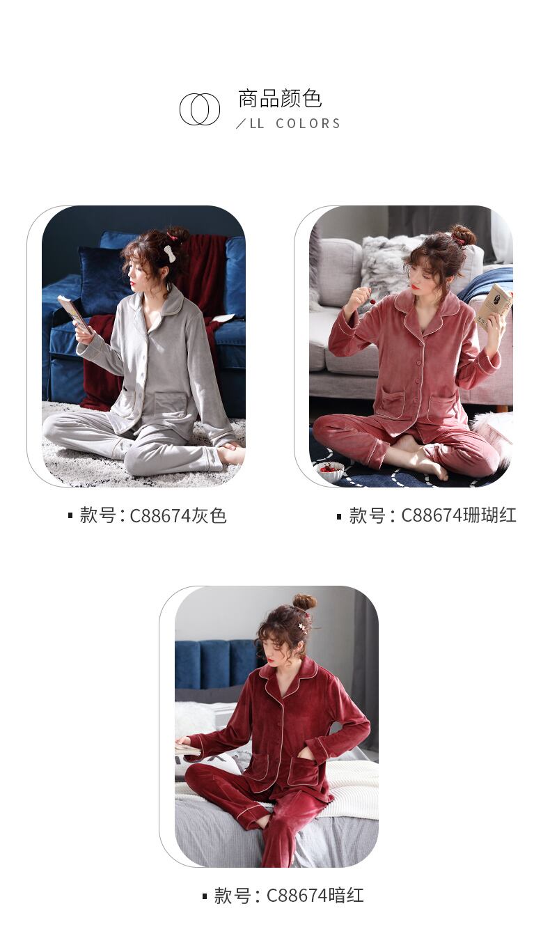 パジャマの女性の秋と冬の島のフリースとフランネルのサンゴのフリースを厚くすることなく暖かく保つためのフリース春と秋の薄いホームサービス jial72980255374