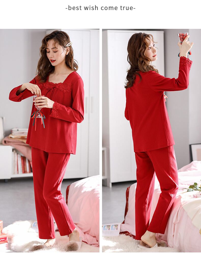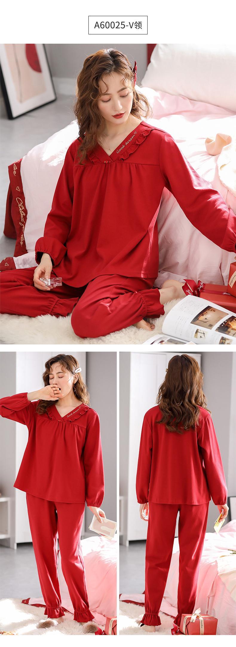 パジャマレディース春と秋のモデル秋綿長袖家庭服綿出生年牛結婚の大きな赤い年秋と冬 jial90993747680
