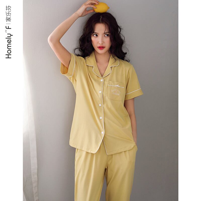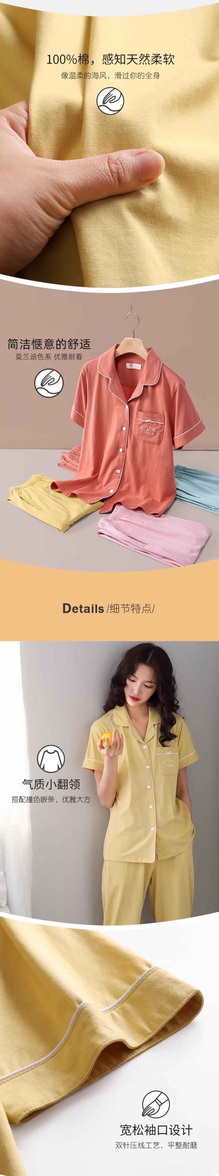 Carrefineパジャマレディースサマーコットン半袖パンツホームウェアカジュアルサマーシンコットンツーピーススーツ jial18218137002