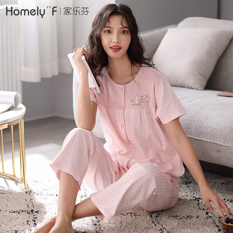 パジャマレディースサマーコットン半袖パンツホームウェアレディースサマーサマーコットンeseキュートなツーピーススーツ jial20305240991
