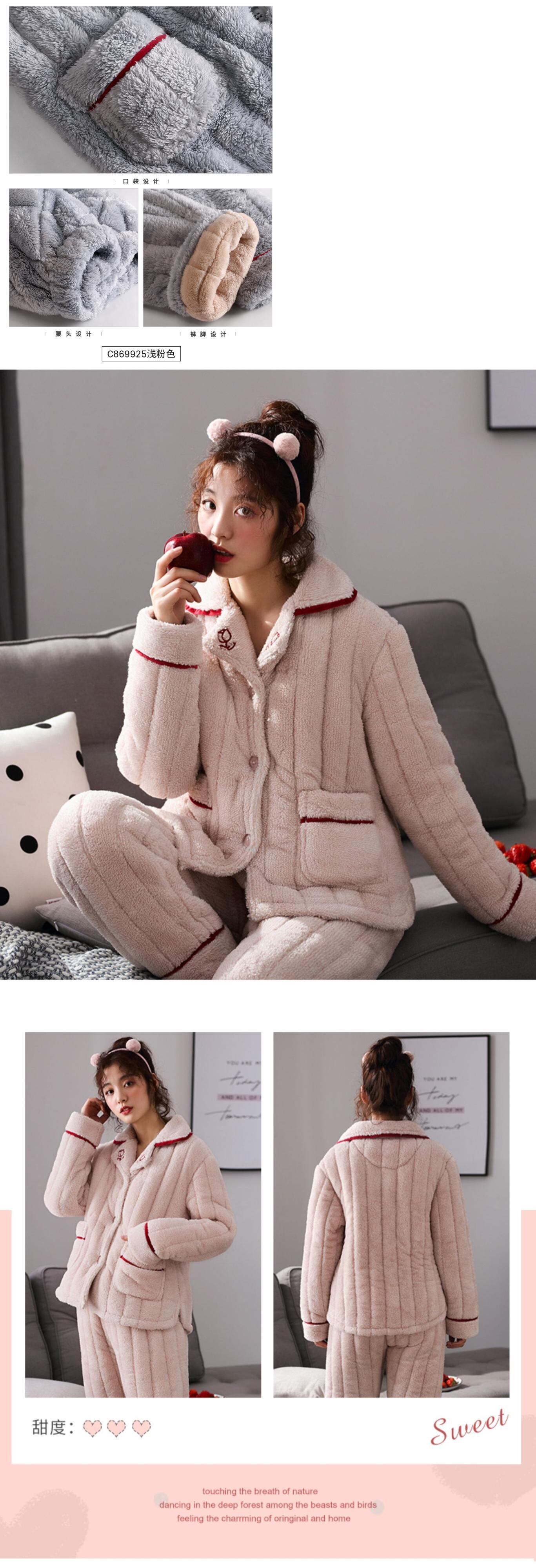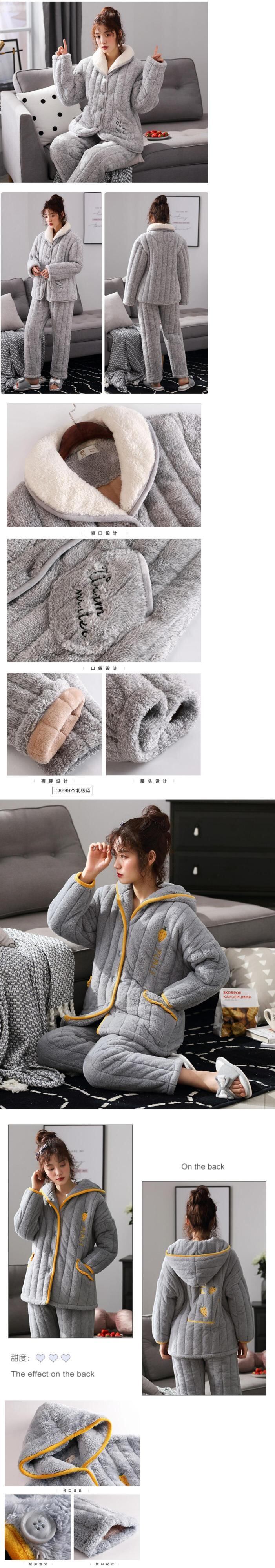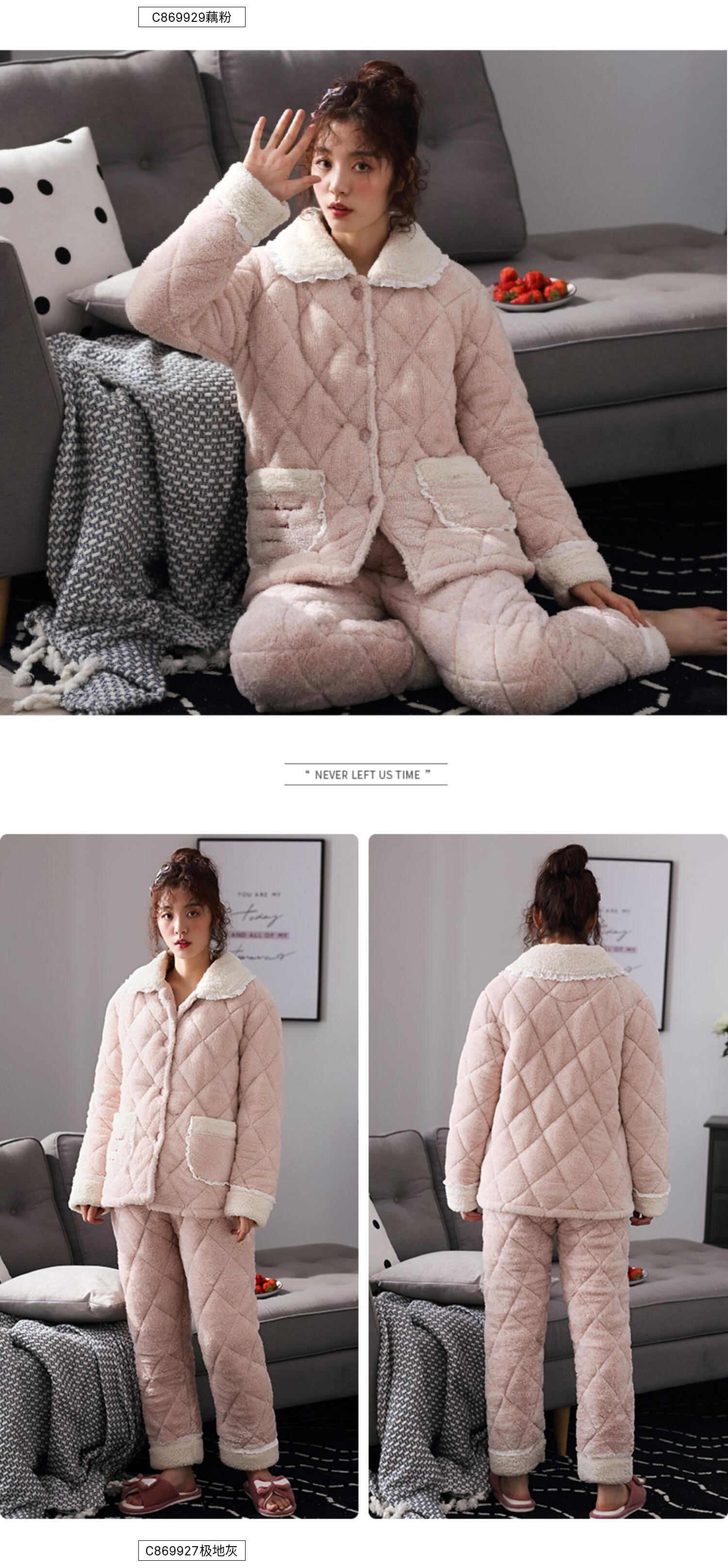 パジャマレディース冬3層厚手キルティングジャケット秋冬プラスベルベットウォームフランネルコーラルベルベット超厚手の家庭服 jial48730644051