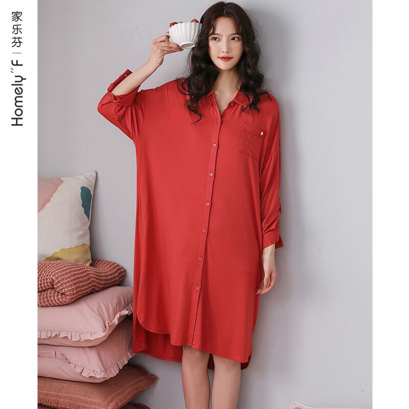 ネグリジェパジャマ春夏夏長袖春秋薄手春モーダルコットンシルクカーディガンシャツ長袖 jial35970200991