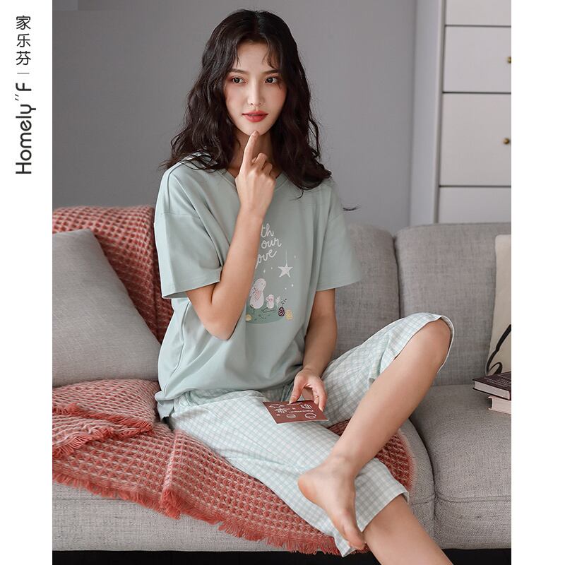 パジャマサマーコットン半袖ショーツホームウェアサマーシンコットンはツーピーススーツに出かけることができます jial47223856097