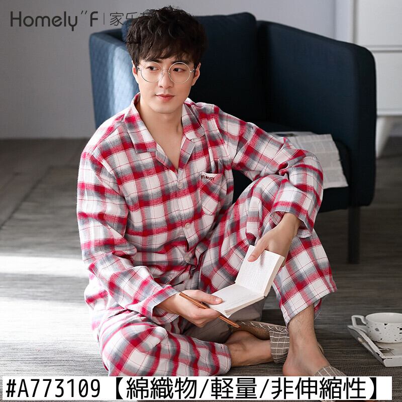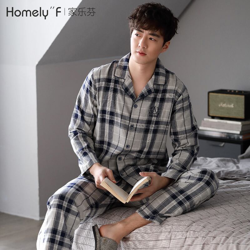 ウーブンコットンガーゼパジャマメンズ春秋コットン長袖ホームウェアメンズコットン春夏薄手のスーツ jial47139436027