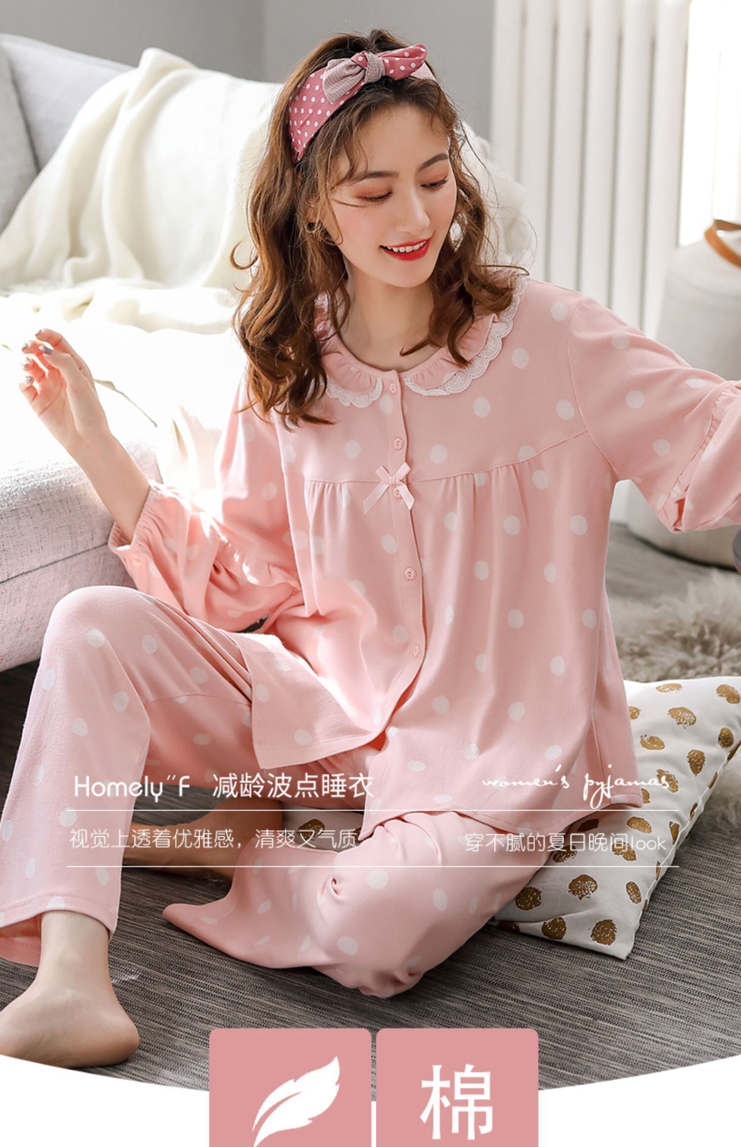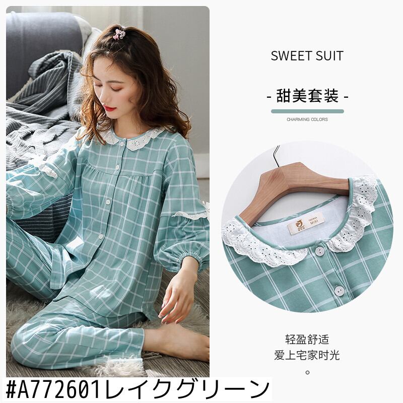 パジャマ春秋秋コットン長袖ホームウェア夏薄手コットン甘いeseかわいいスーツ jial40345583437