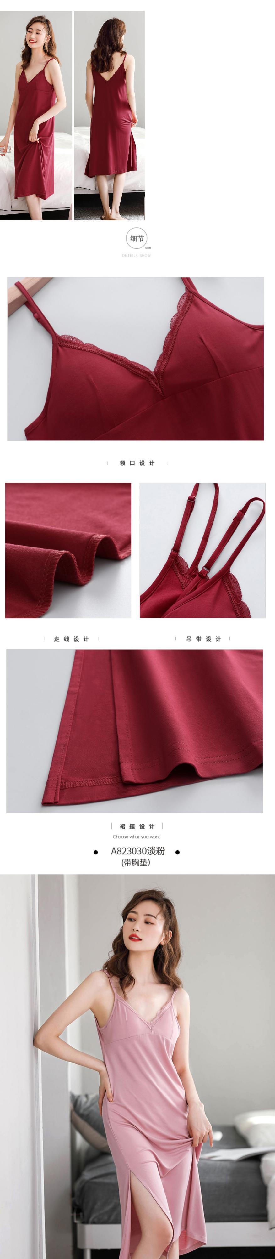 胸パッド付きネグリジェレディースパジャマ夏夏モーダルサスペンダーセクシースリットベストアイスシルク薄いラージサイズ jial46203606059