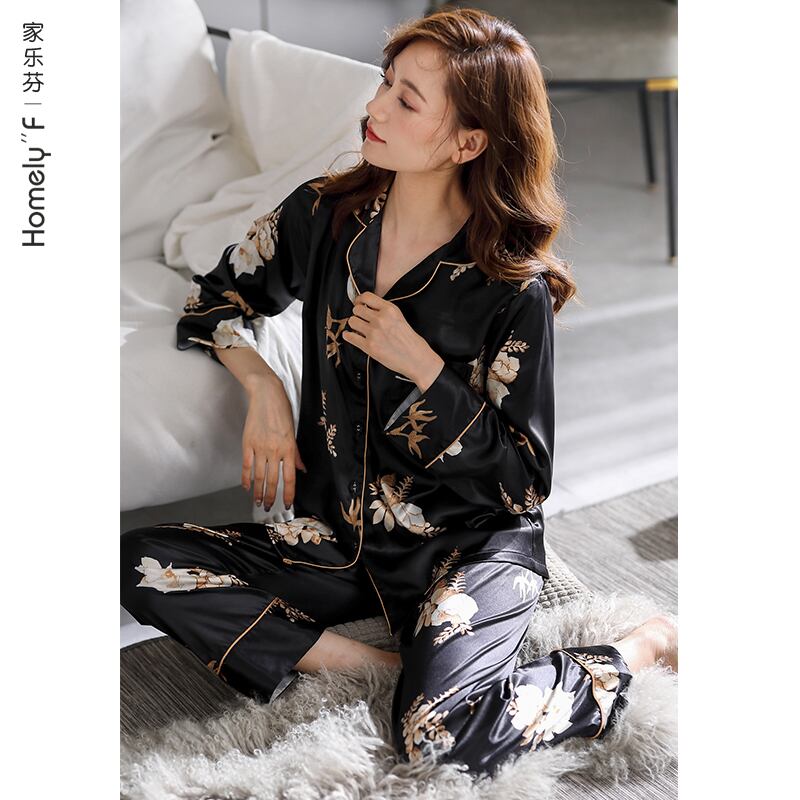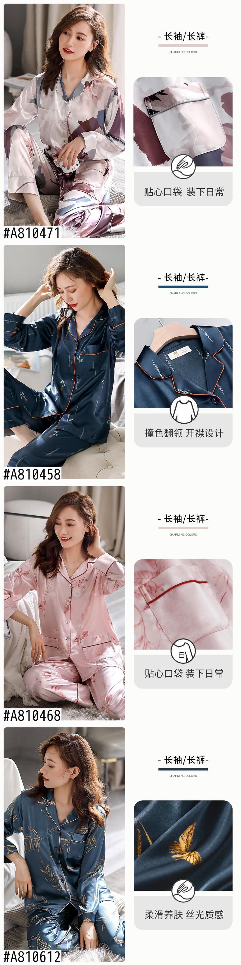 パジャマ春夏シルクアイスシルク長袖ホームウェアシミュレートシルク薄い春と秋秋ツーピーススーツ jial52318850291