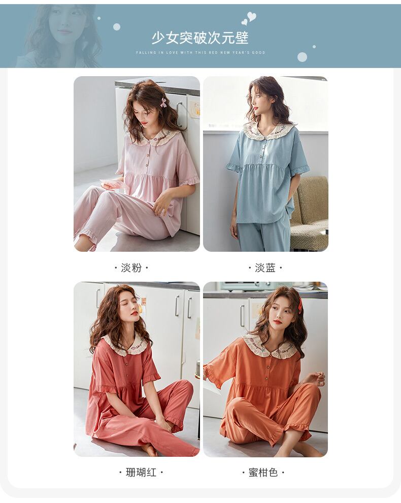 ネグリジェレディースパジャマ夏夏薄片モーダルコットンシルクかわいいese甘い王女風アイスシルク jial14219563687