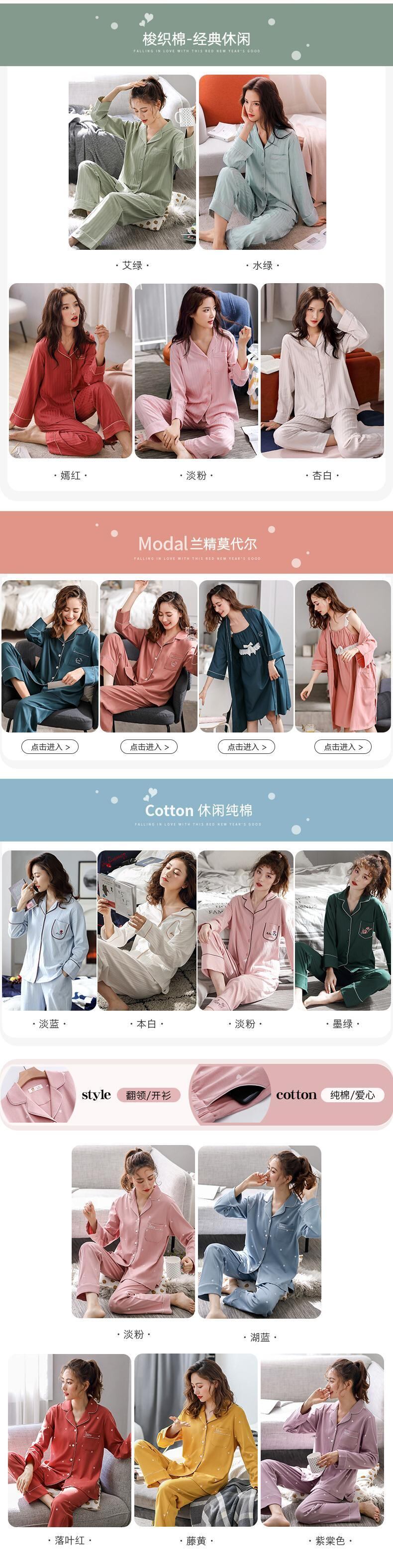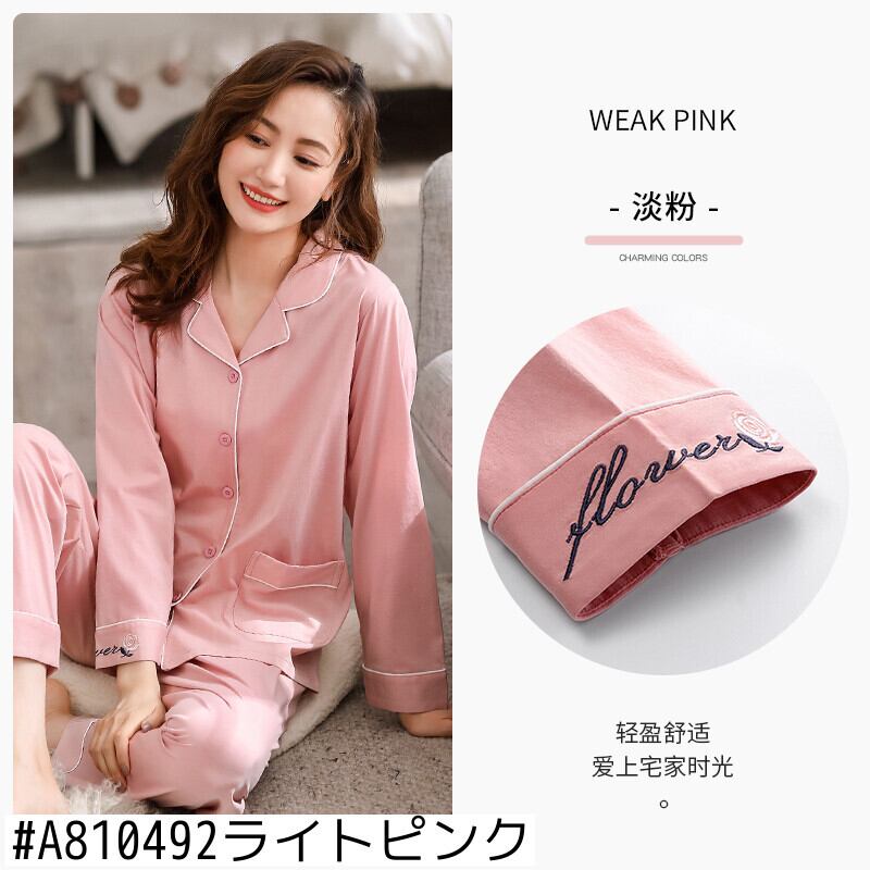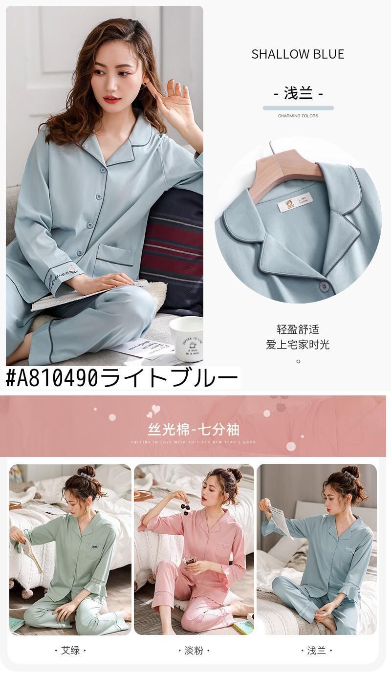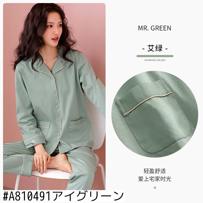 マーセル加工コットンパジャマレディース春夏コットン長袖ホームウェアコットン春秋秋薄手のツーピーススーツ jial10972013158