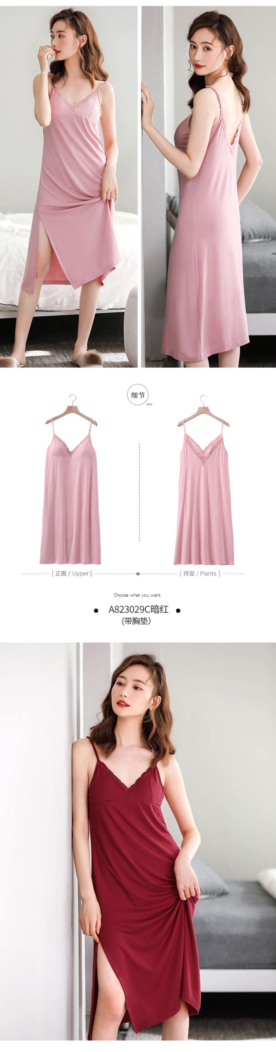 チェストパッド付きナイトドレスレディースパジャマスカート夏夏モーダルコットンサスペンダーセクシースプリットベストアイスシルク薄いセクション jial30295457717