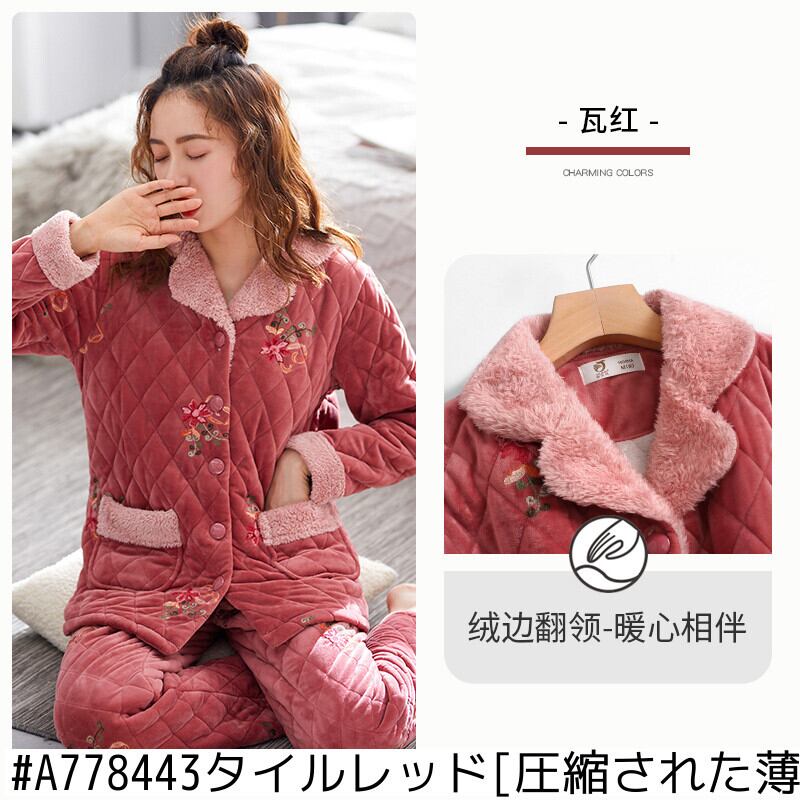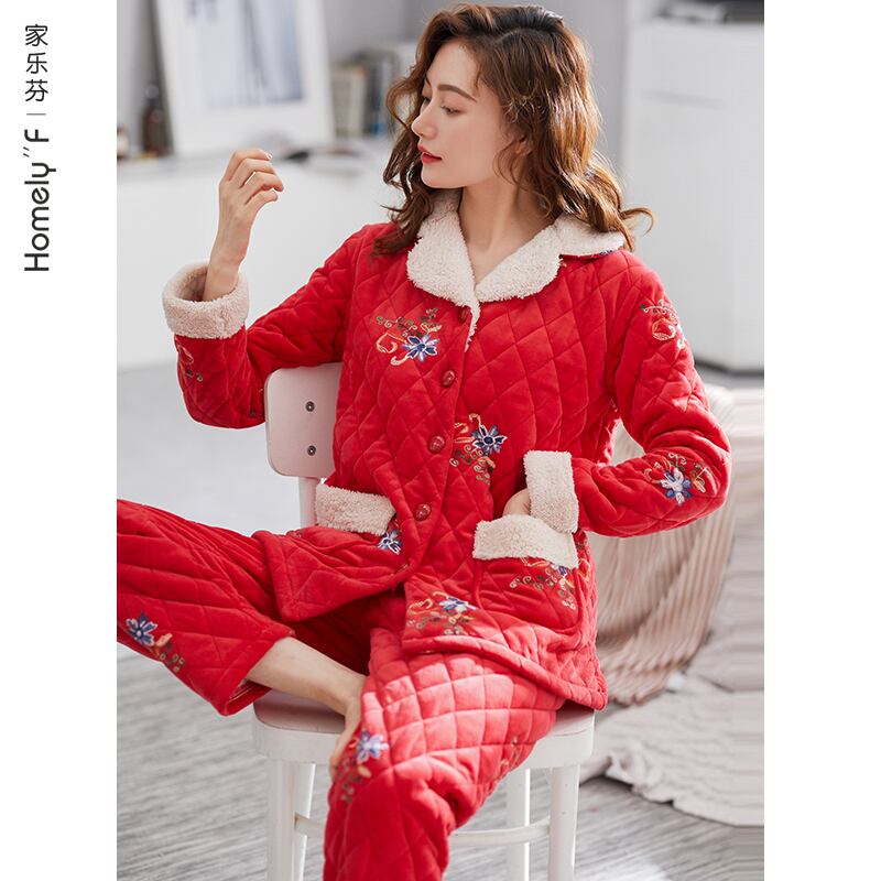 パジャマレディース秋と冬冬の肥厚とベルベットキルティングコーラルベルベットフランネル家庭服大きな赤い出生年 jial55602274469