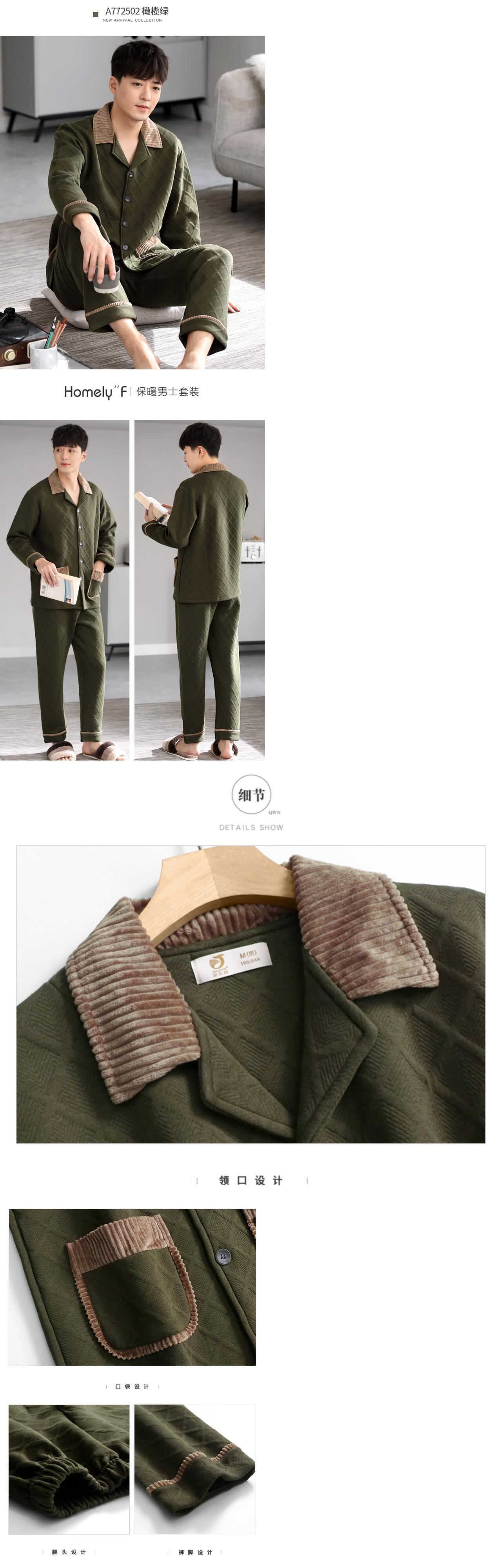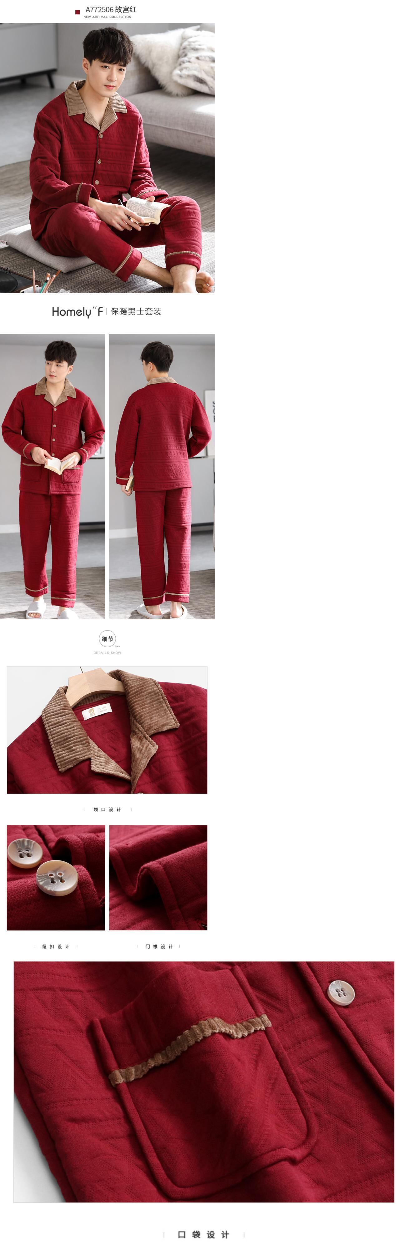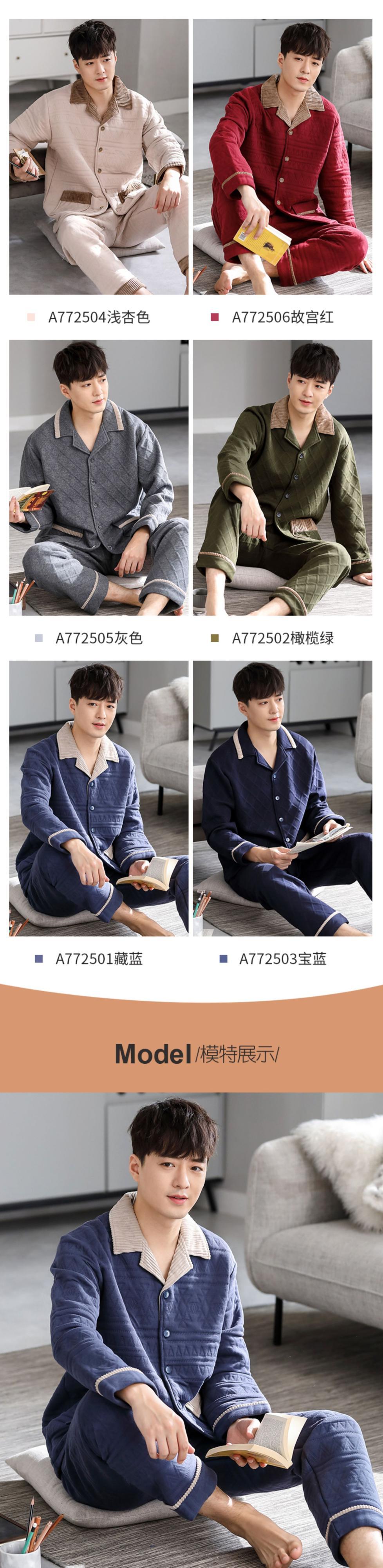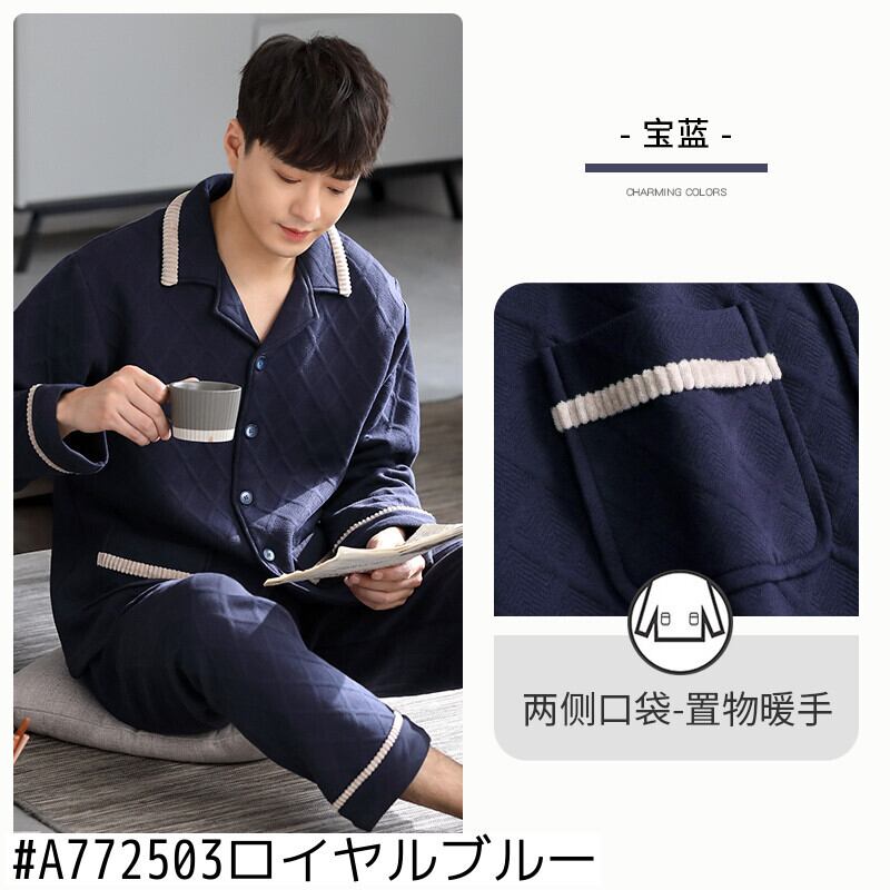 パジャマメンズ春秋厚手のコットン長袖家庭服メンズ秋冬モデル冬キルティング薄手のコットンスーツ jial49930977641