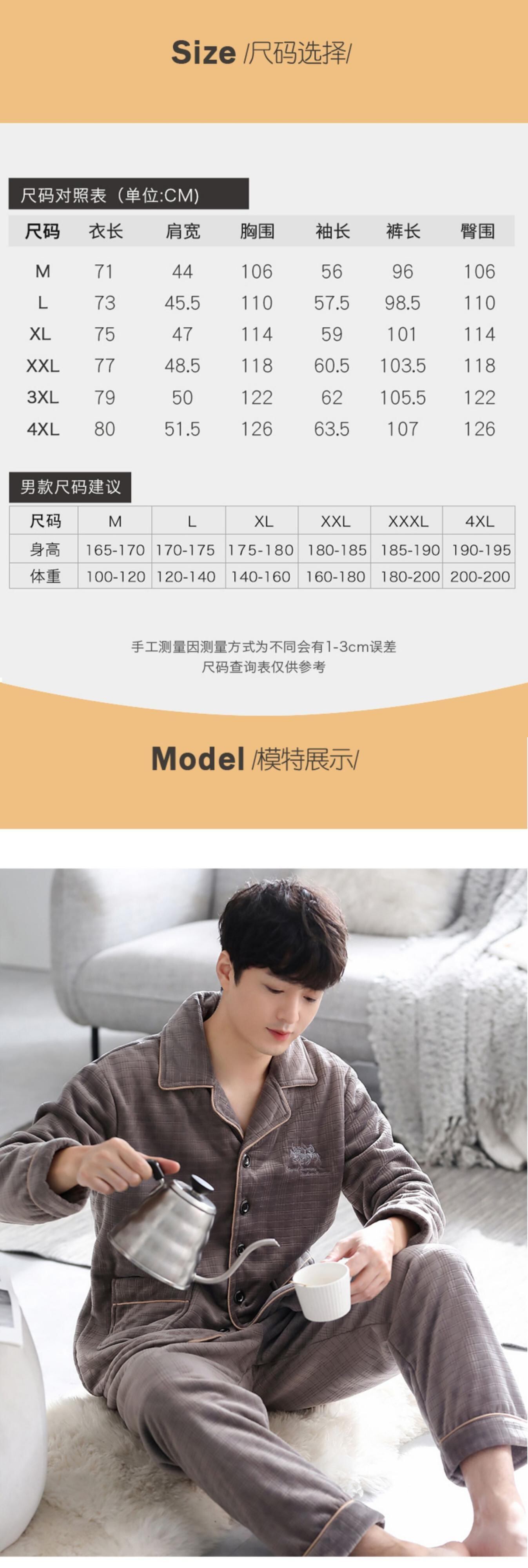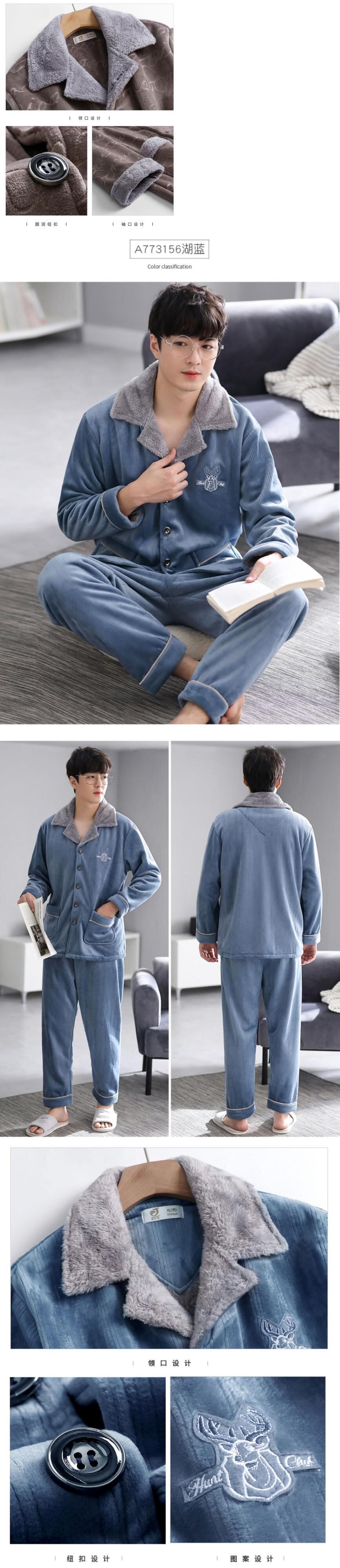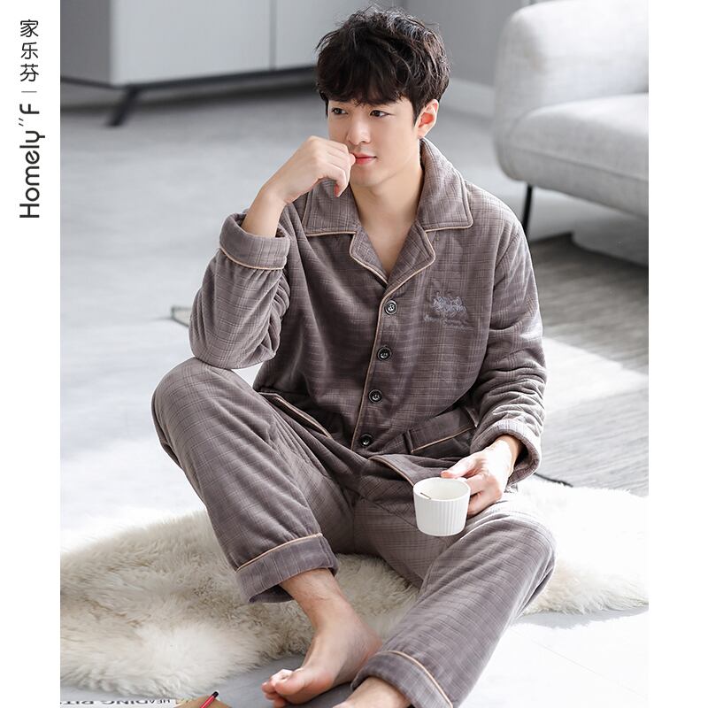 パジャマメンズ秋冬モデル冬コーラルフリースコンポジットキルティングシックニングプラスベルベットウォームフランネル家庭服冬 jial87194282217