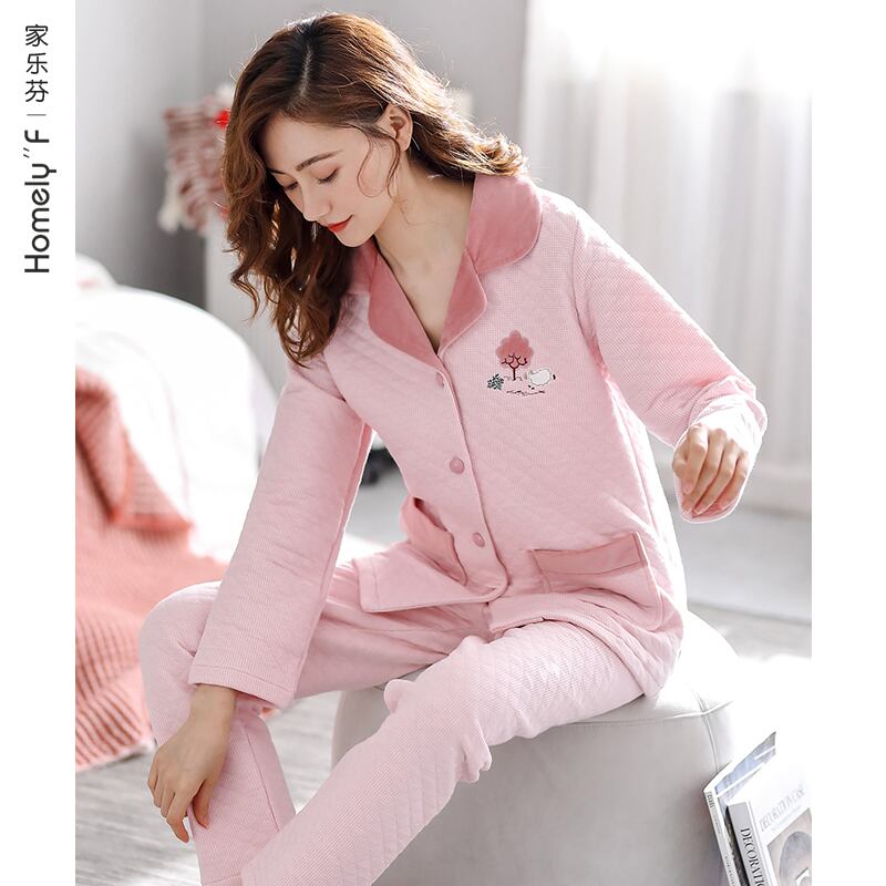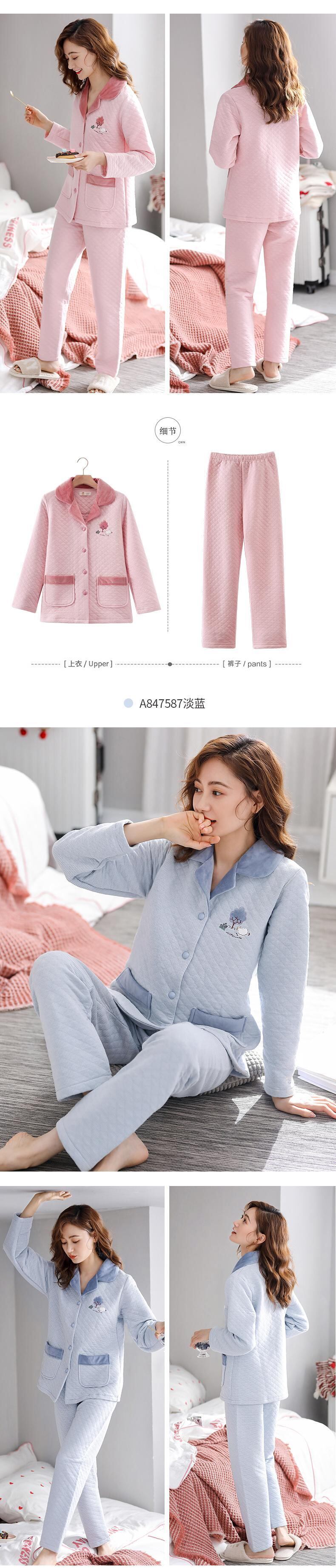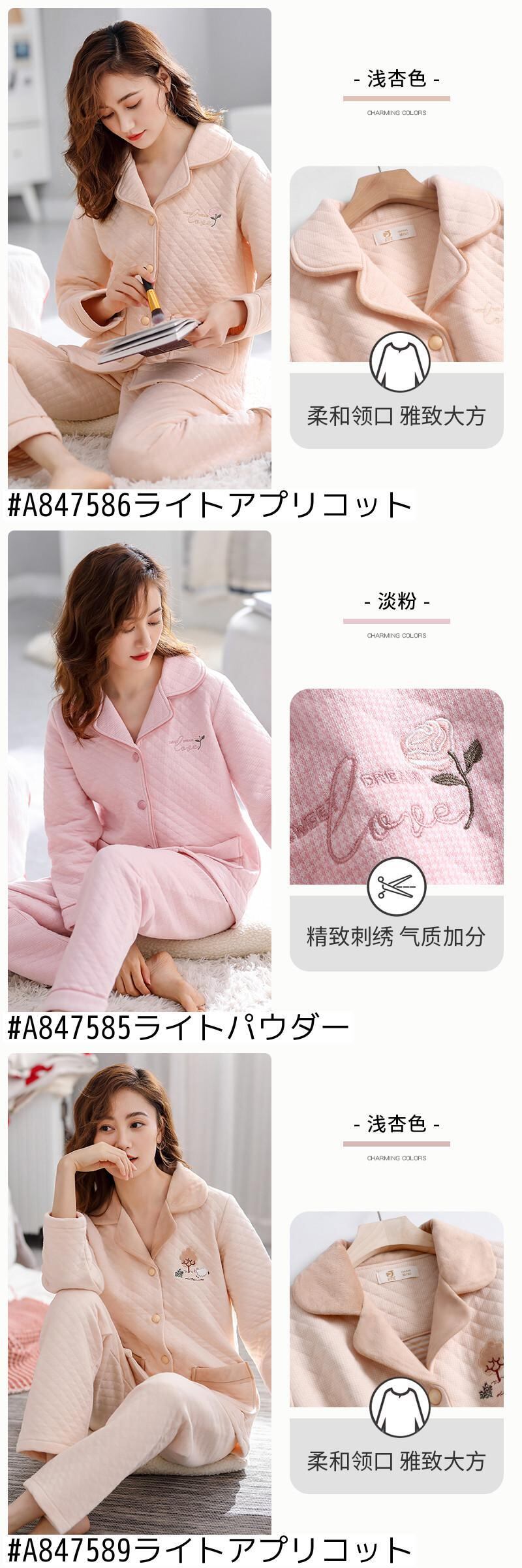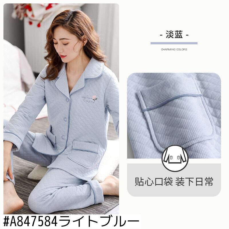 エアコットンパジャマレディース春秋厚手コットン長袖家庭服コットン秋冬中間層キルティングで保温 jial8291085578
