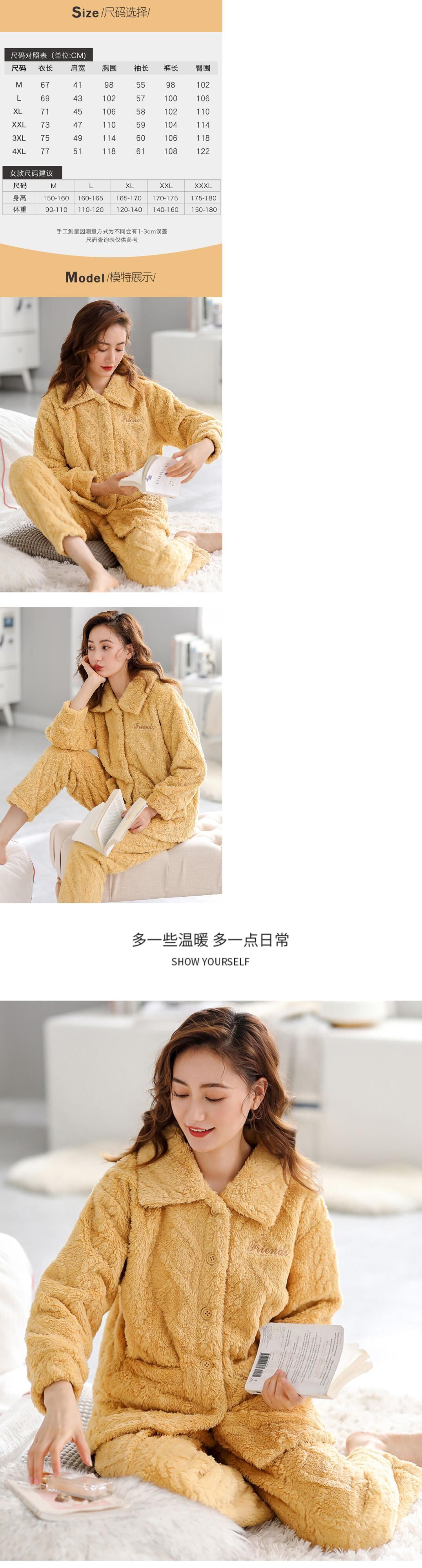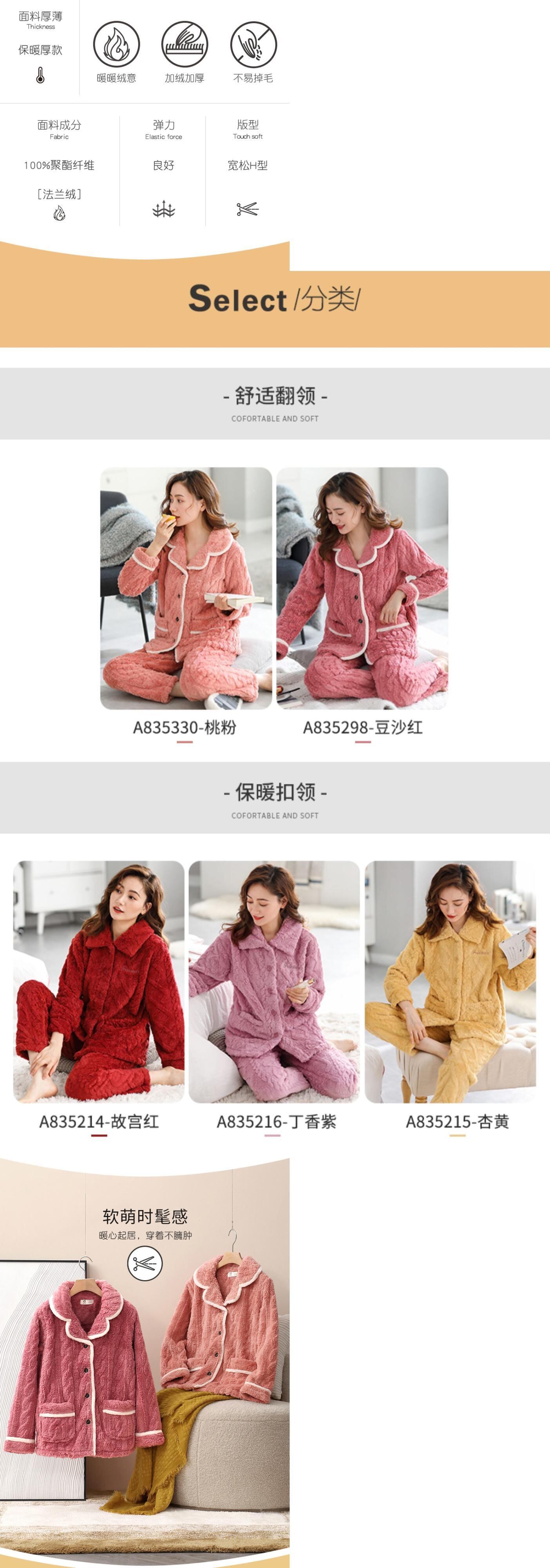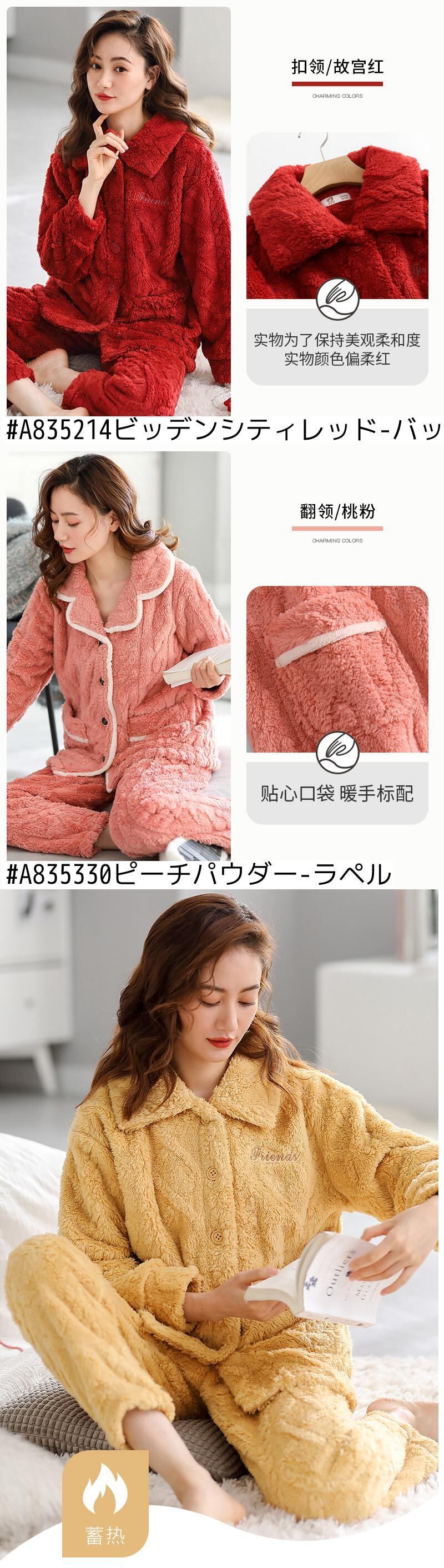 フランネルパジャマレディース秋冬コーラルフリース厚みのあるベルベットの暖かい家庭服秋冬モデルは冬の外で着用できます jial51778057812