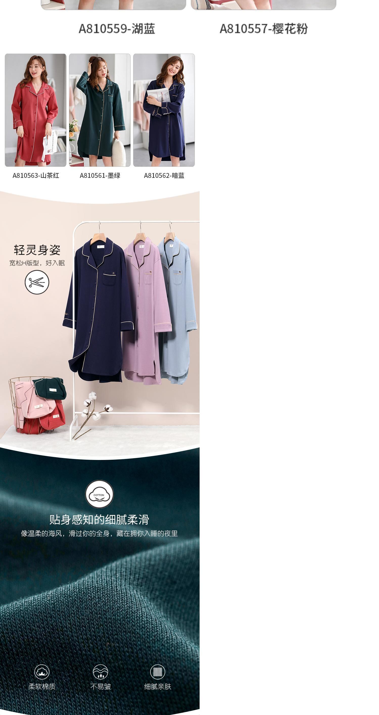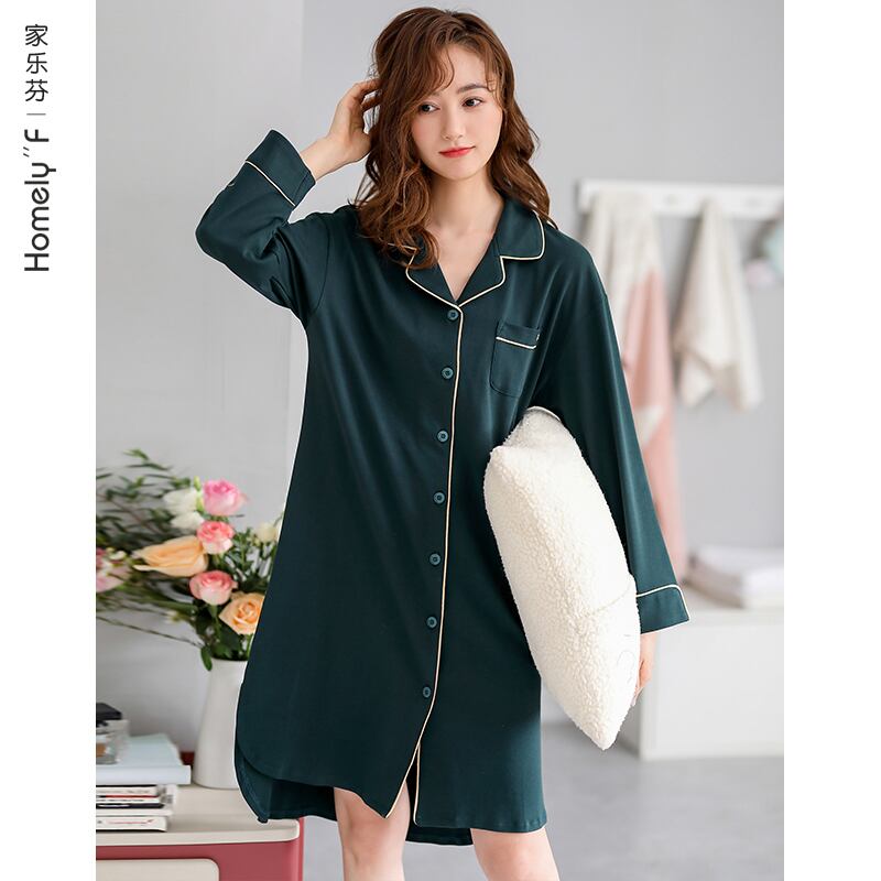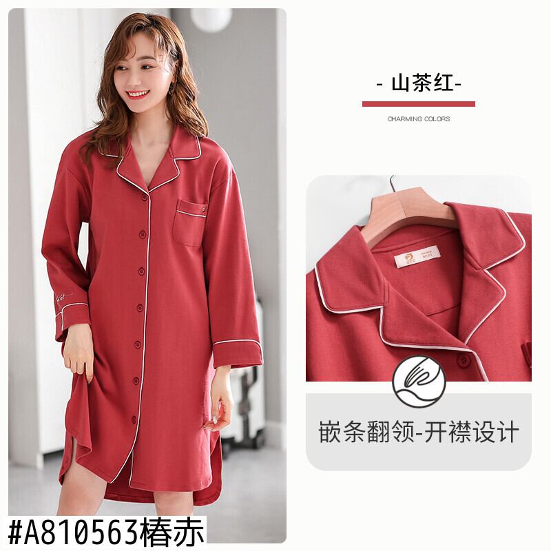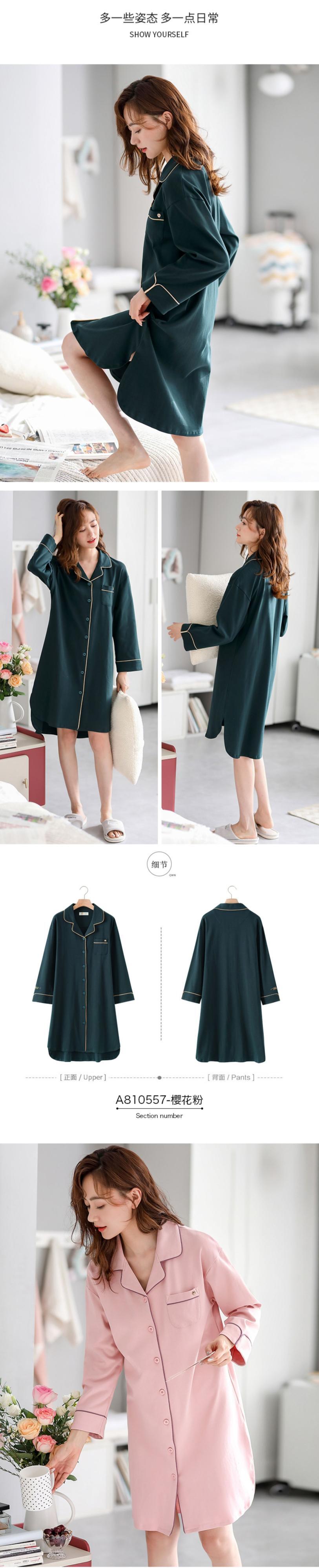 ネグリジェパジャマ春秋秋長袖コットン薄手ロングホームウェアシャツカーディガンシャツ jial54519726192