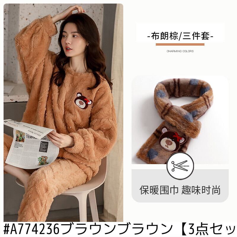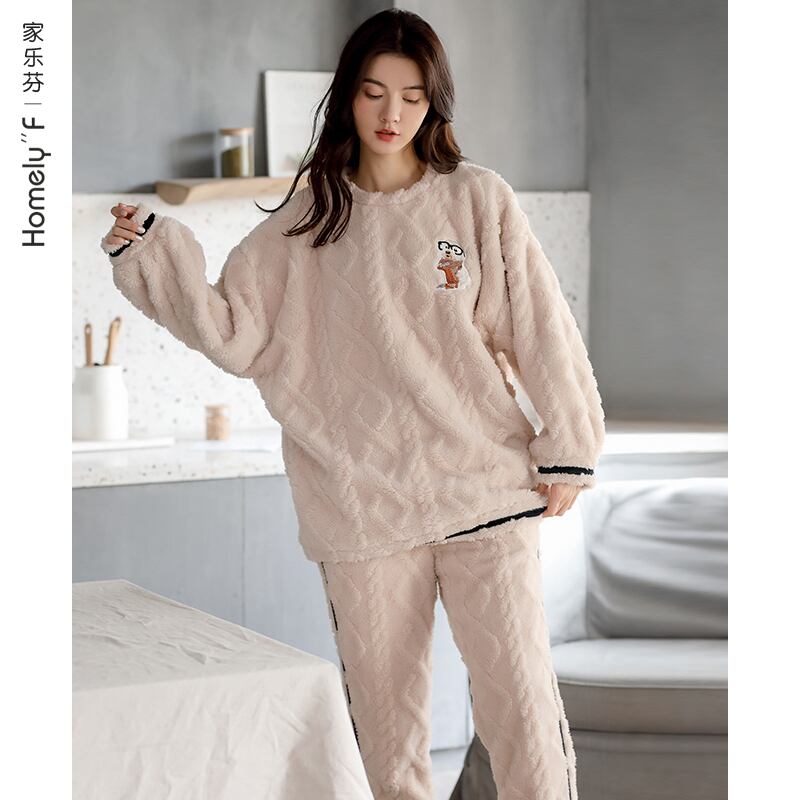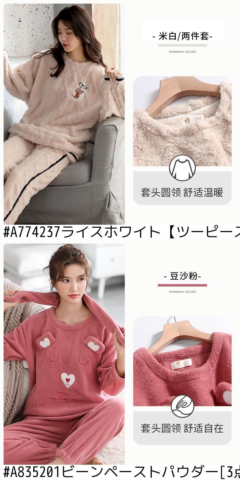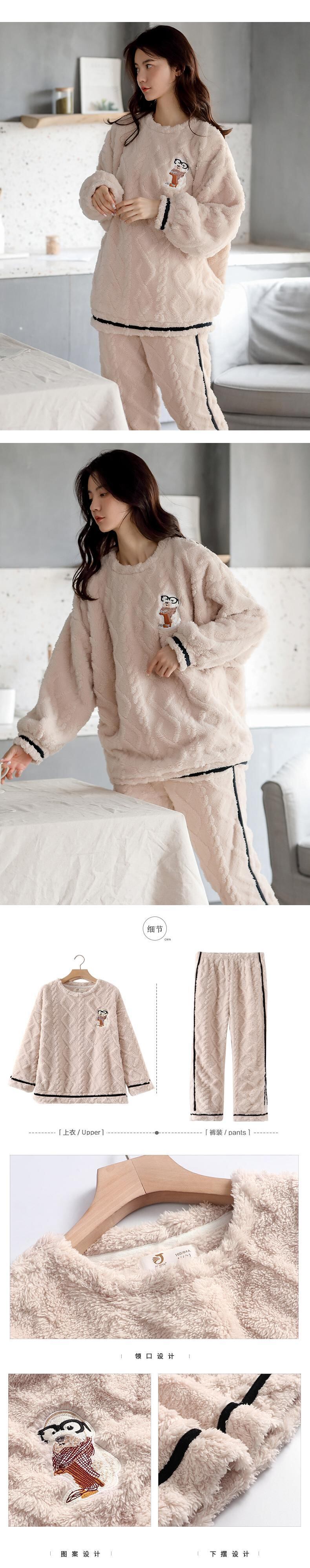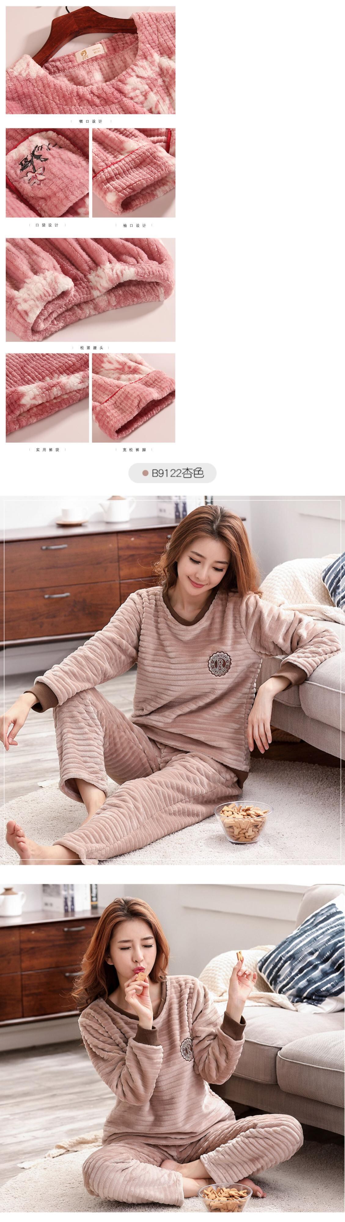 パジャマ秋冬コーラルフリースシックニングとフリースウォームフランネルホームウェア冬冬プルオーバーセット jial26678063631