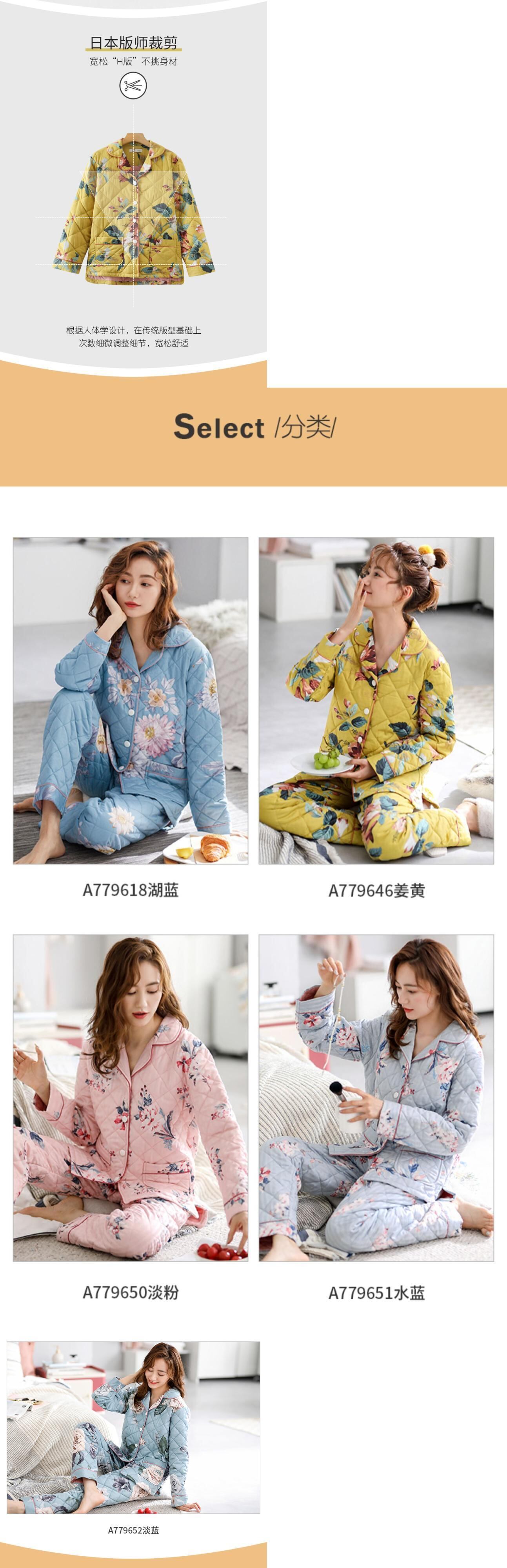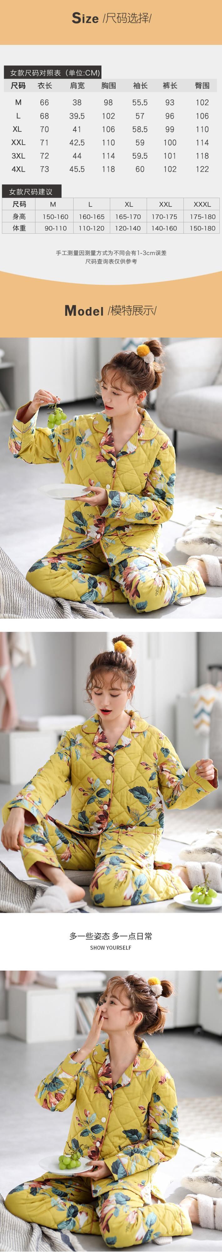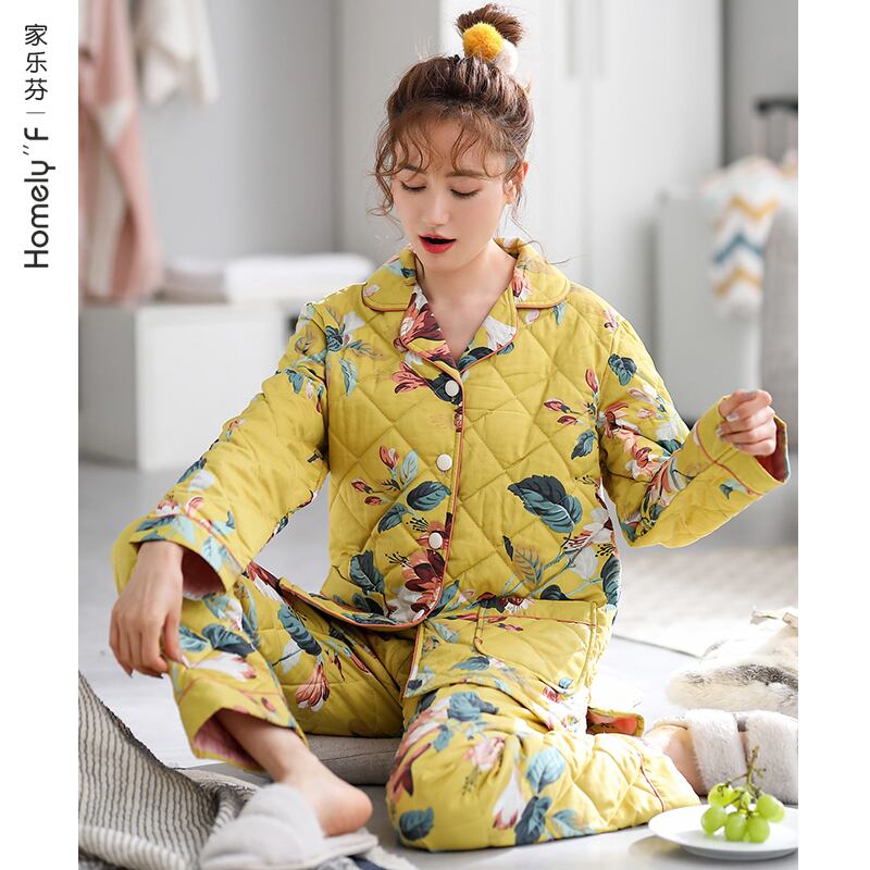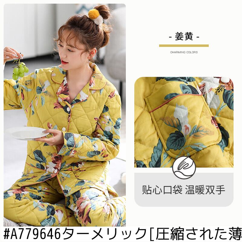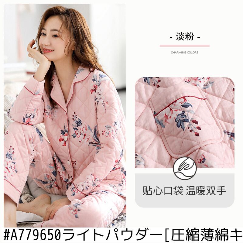 パジャマレディース秋冬冬スタイル冬厚手綿長袖家庭服綿キルティングジャケット中年お母さんが保温する jial19079567668