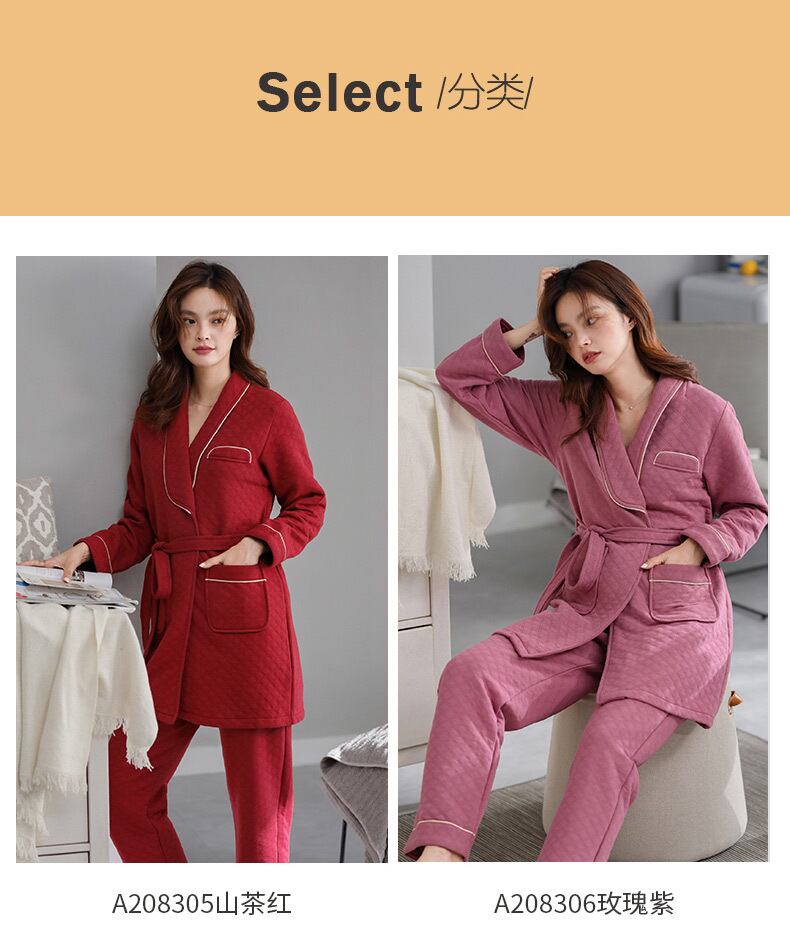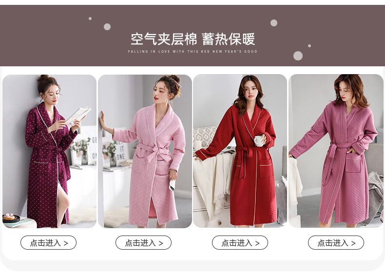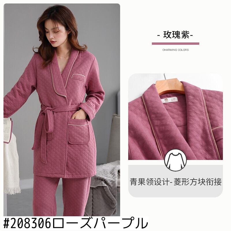 パジャマレディース春と秋の長袖中くらいの長さの厚手の綿の暖かいキルティングネグリジェ秋と冬の綿の家庭服 jial9794558099