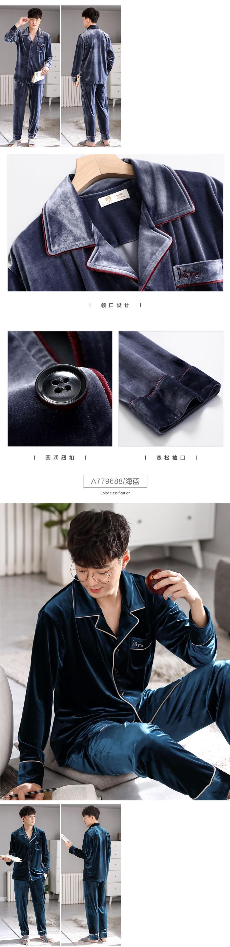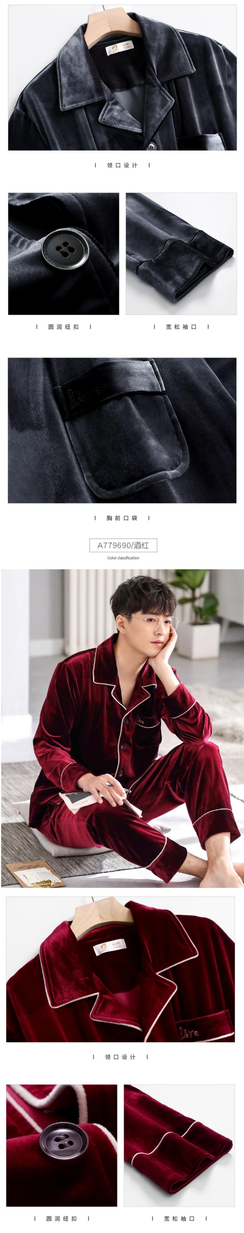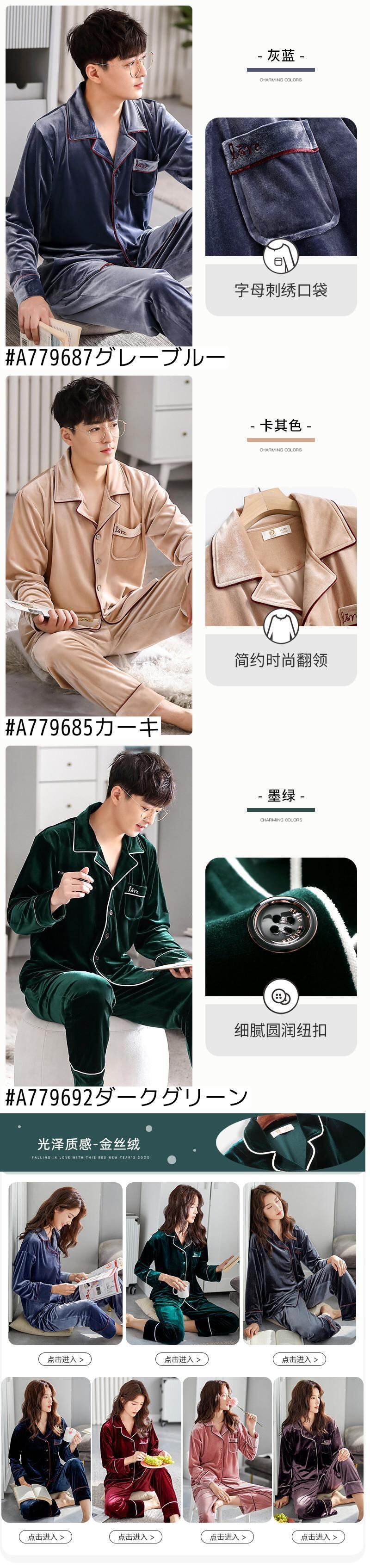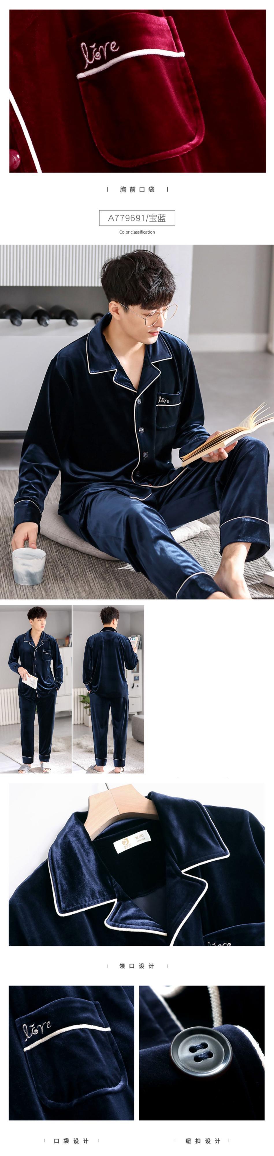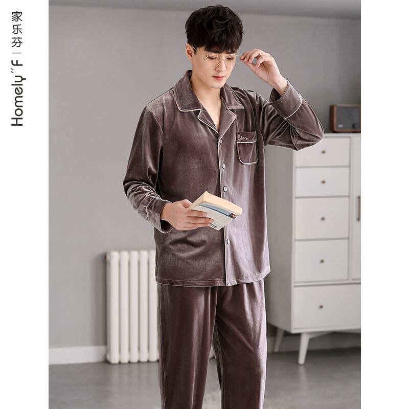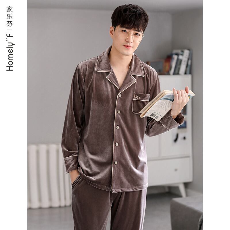Carrefineパジャマメンズ春秋ゴールドベルベット長袖ラウンジウェアメンズ秋冬薄冬メンズスーツ jial80380957669
