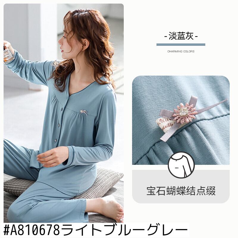 2021年新作パジャマレディース春夏春モーダルコットンシルク長袖家庭服レディース春秋薄手 jial71301990345