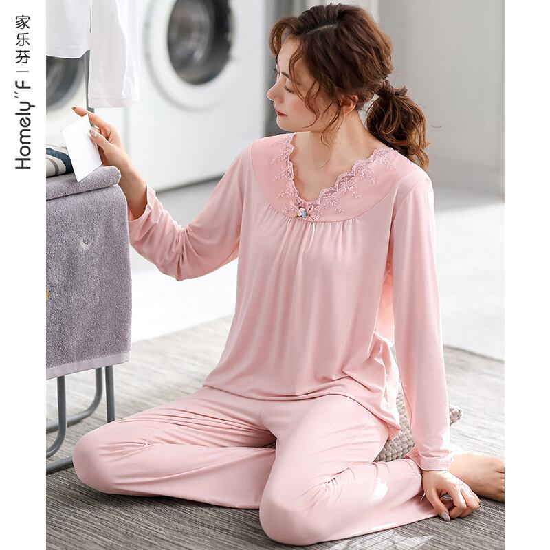 2021年の新しいパジャマ女性の春と秋の長袖モーダルコットンシルク薄い家庭用品女性の春と夏の薄い jial19622131213