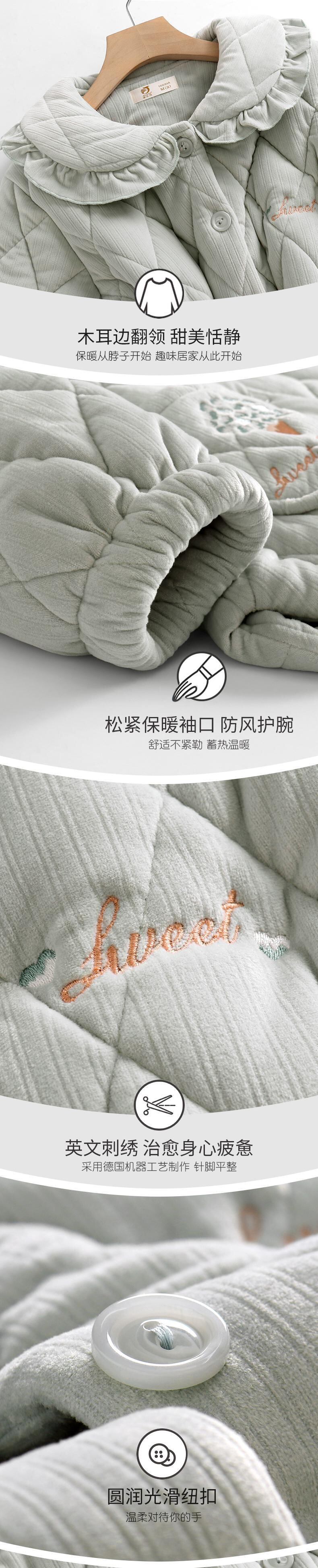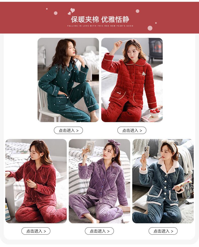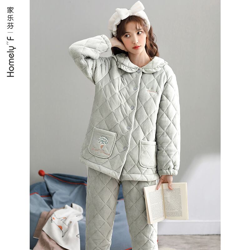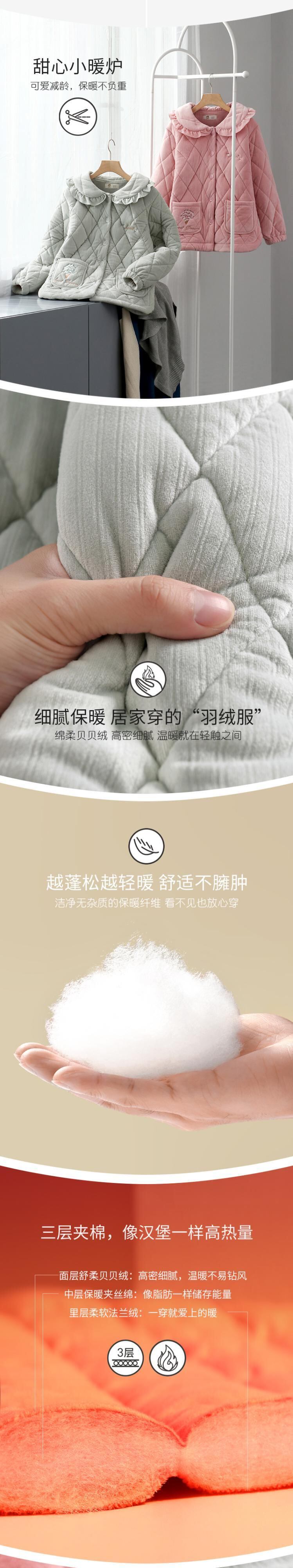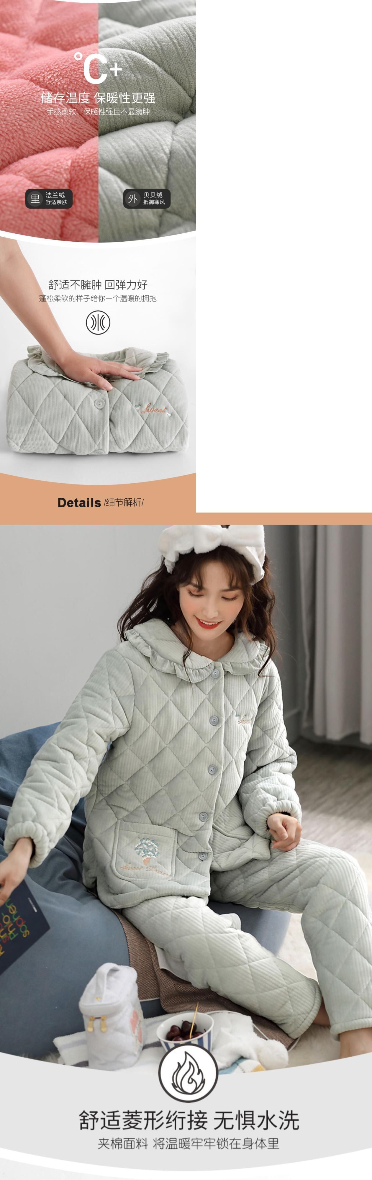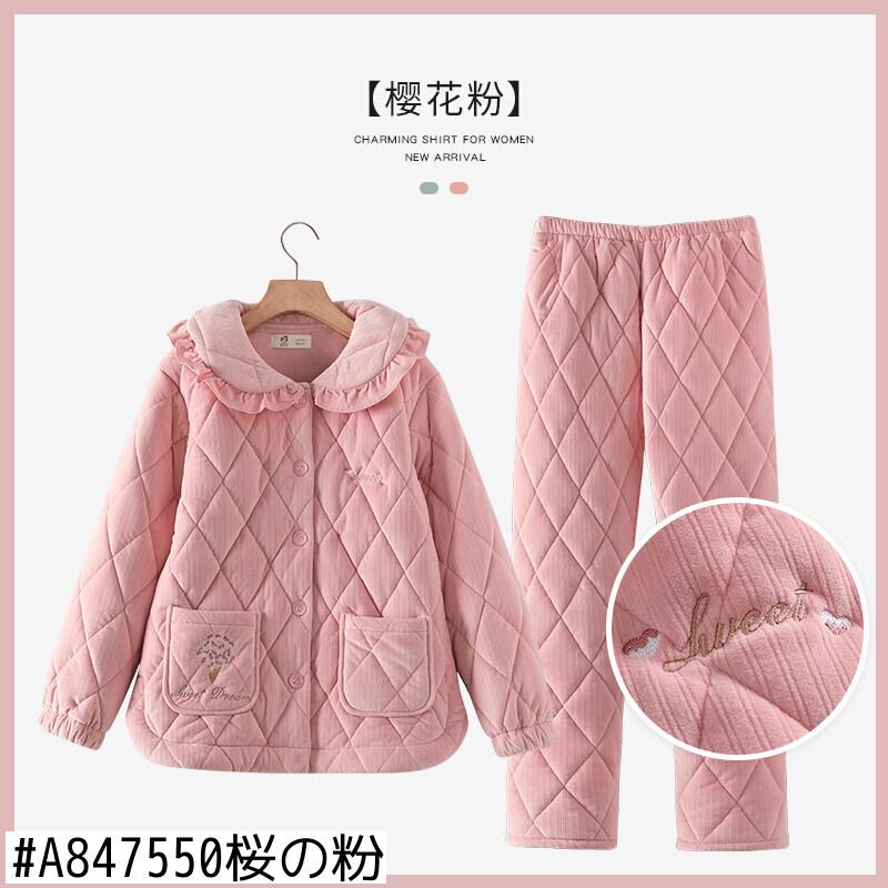 コーラルフリースパジャマレディース冬3層キルティングジャケット厚手とベルベット暖かいフランネル秋と冬の家庭服 jial66063512849