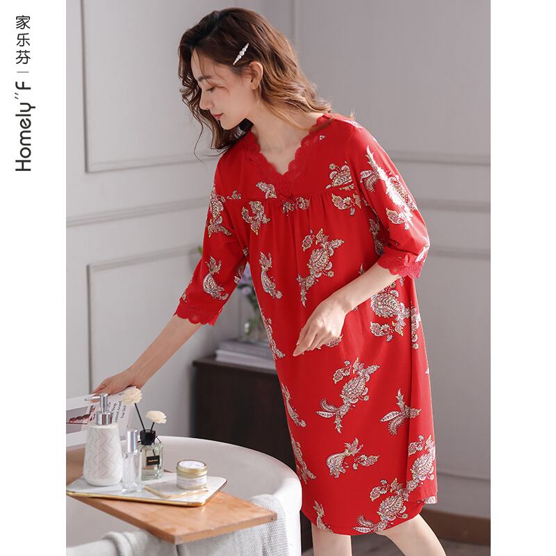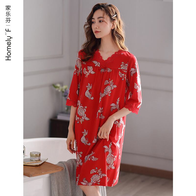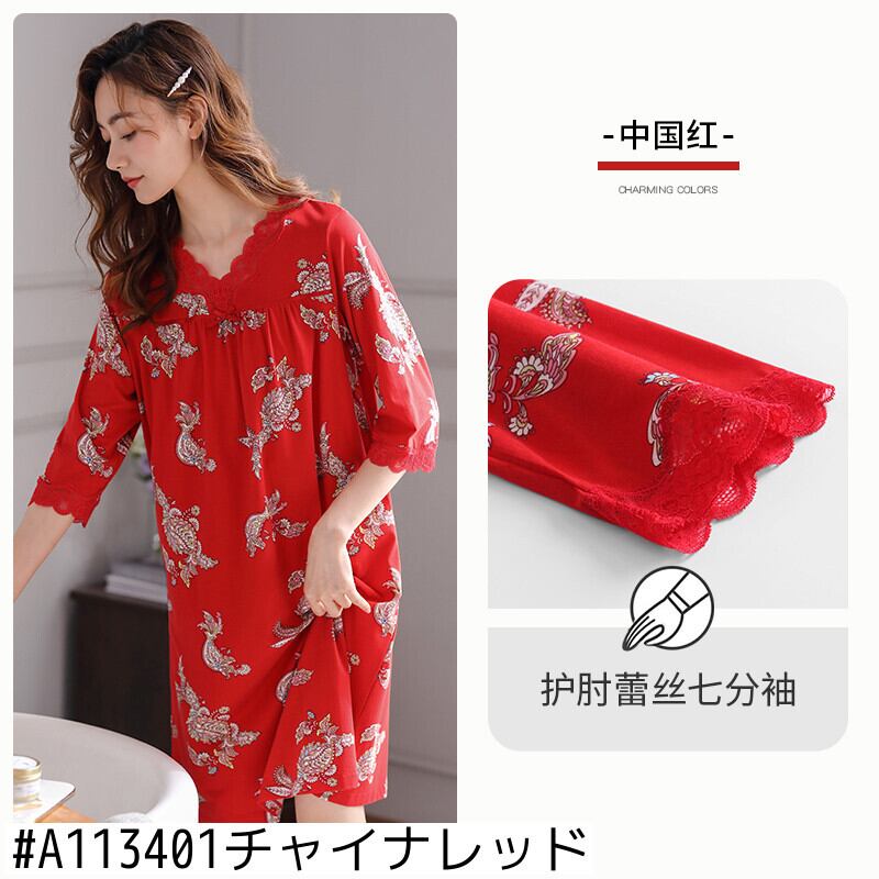 ネグリジェレディースパジャマドレスミドル丈袖夏夏薄手モーダルコットンシルク中年マザールーズ七分袖 jial18117861405