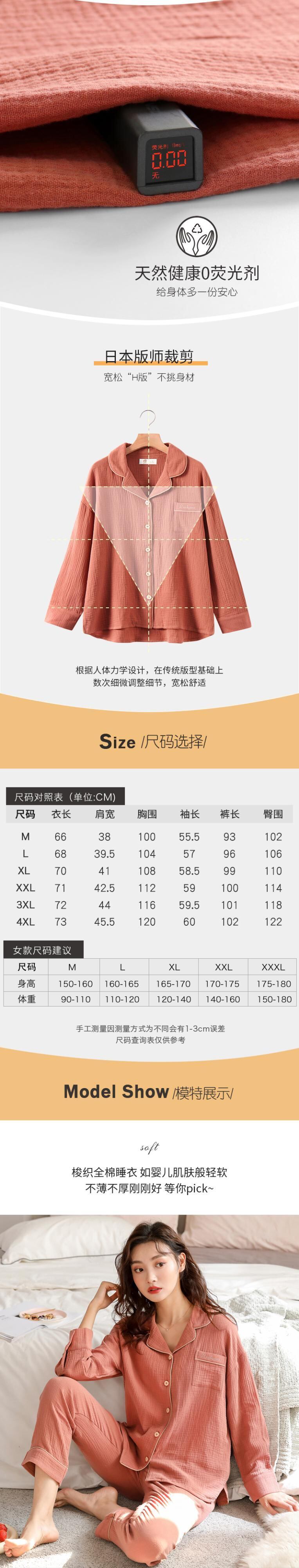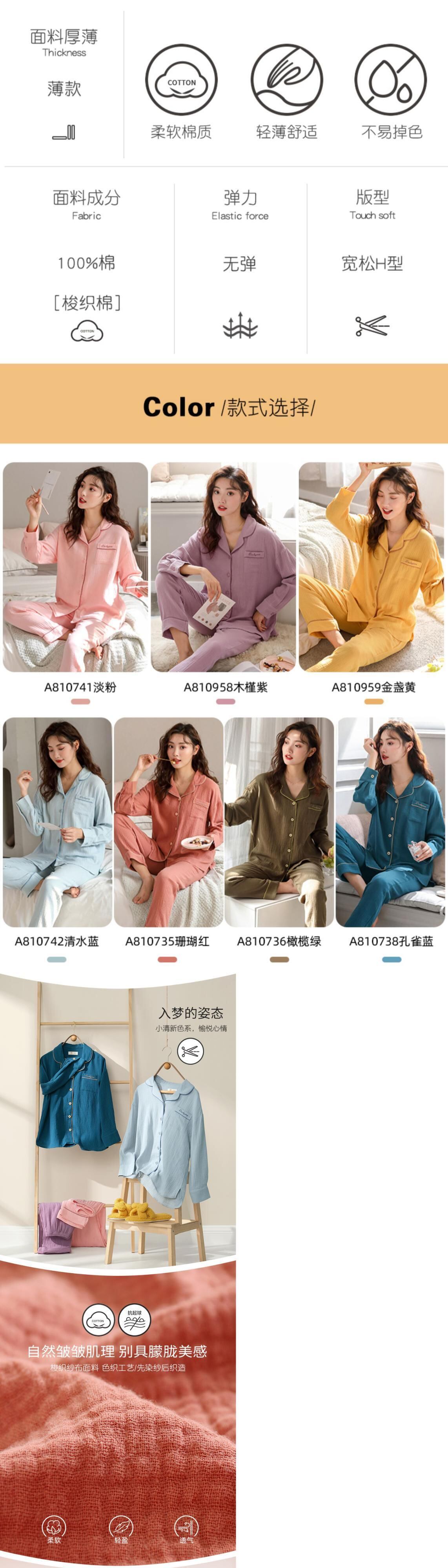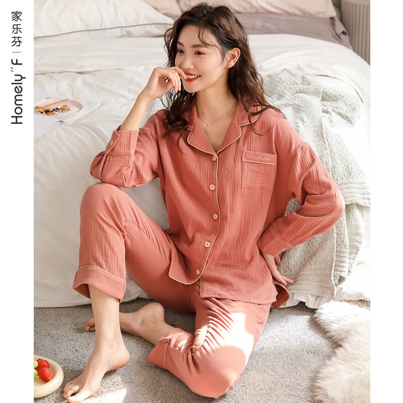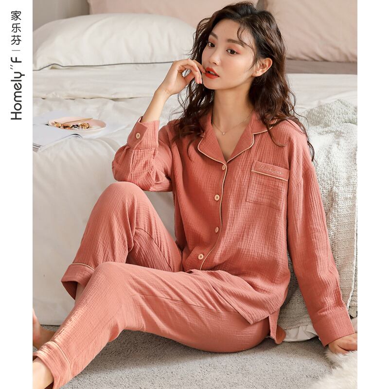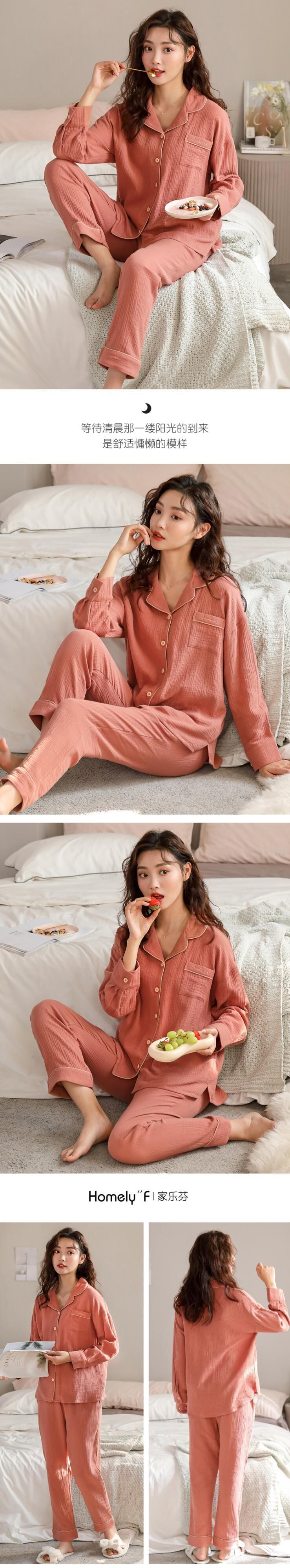 綿と麻のパジャマレディース春夏長袖綿ガーゼ綿家庭用品春春秋薄手夏 jial37023021796