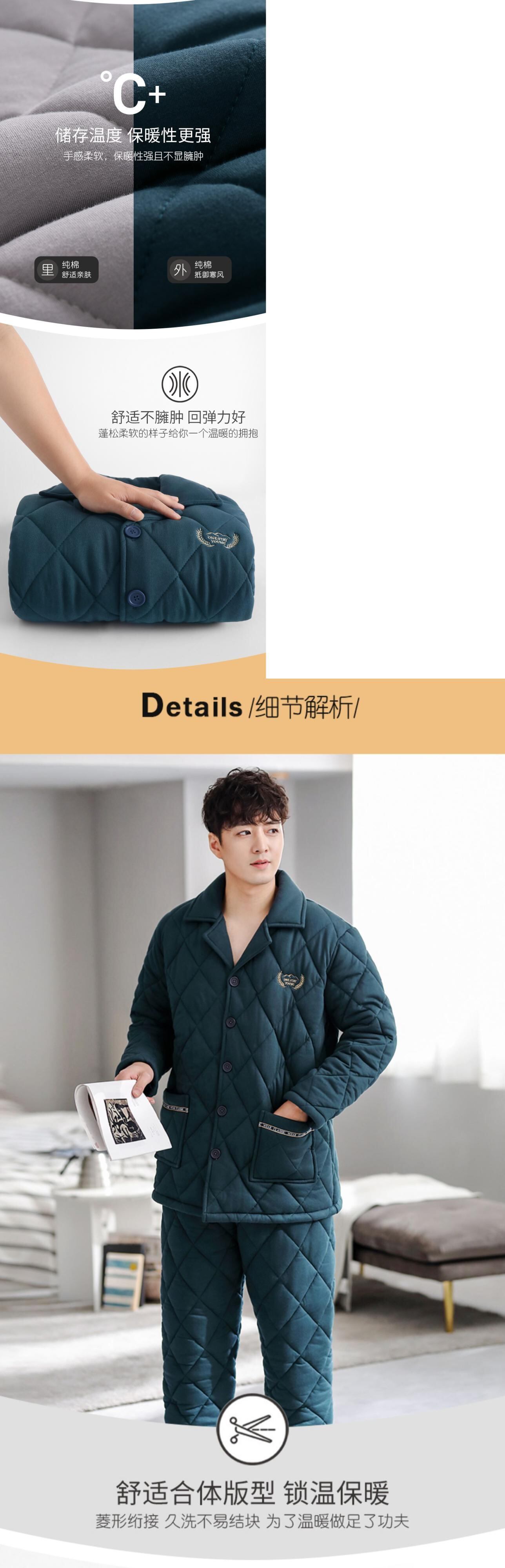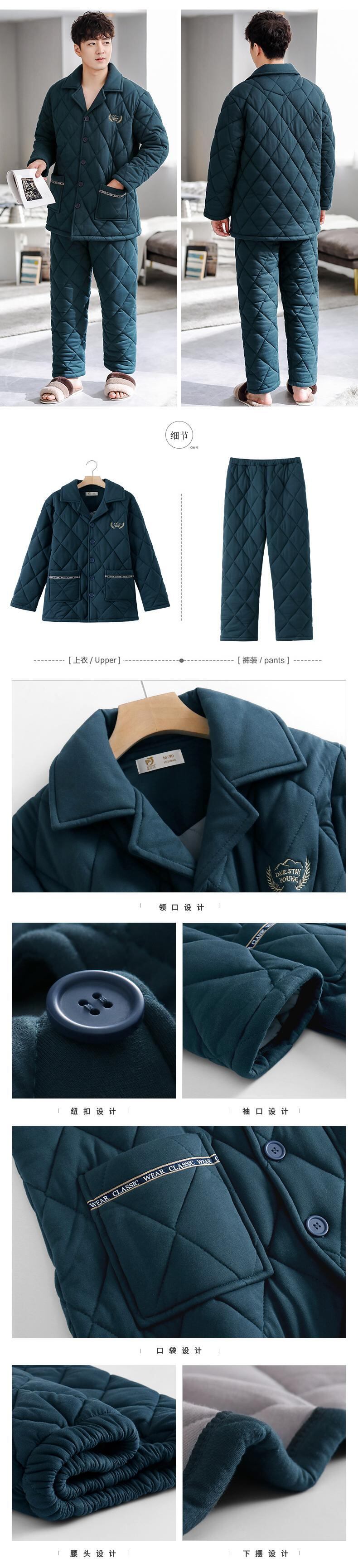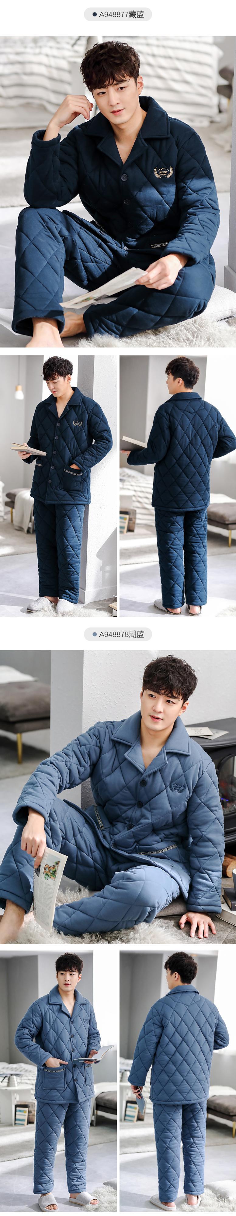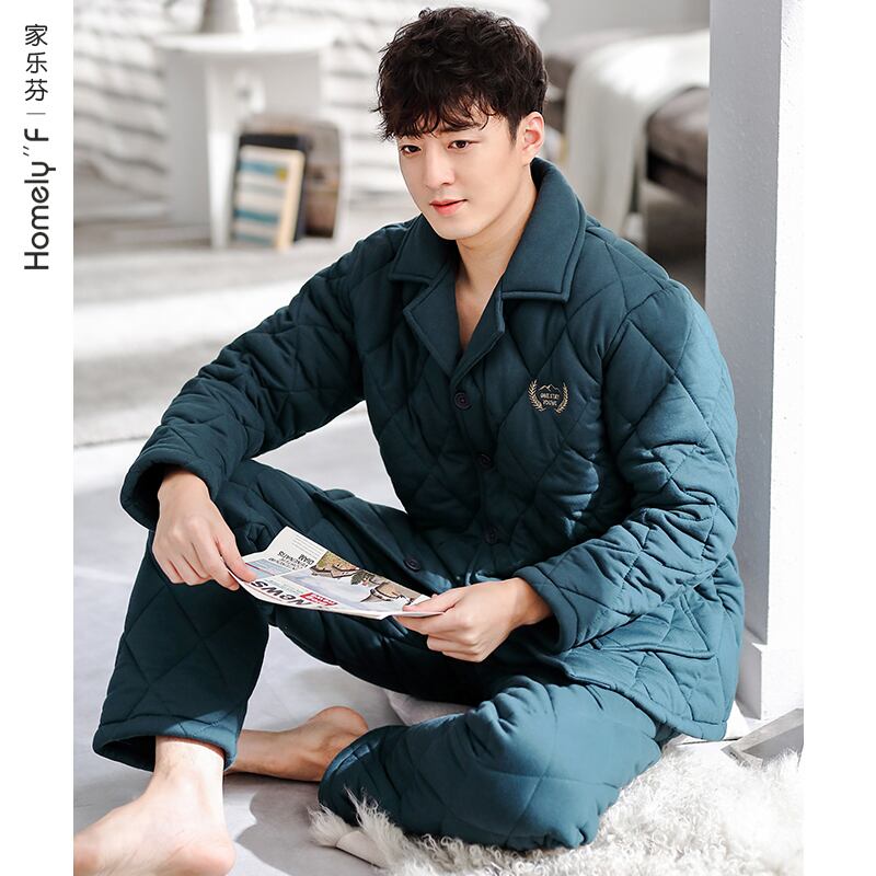 パジャマメンズ冬3層厚手コットンキルティングジャケットプラスコットン秋冬暖かい家庭服メンズコットン jial89960602707