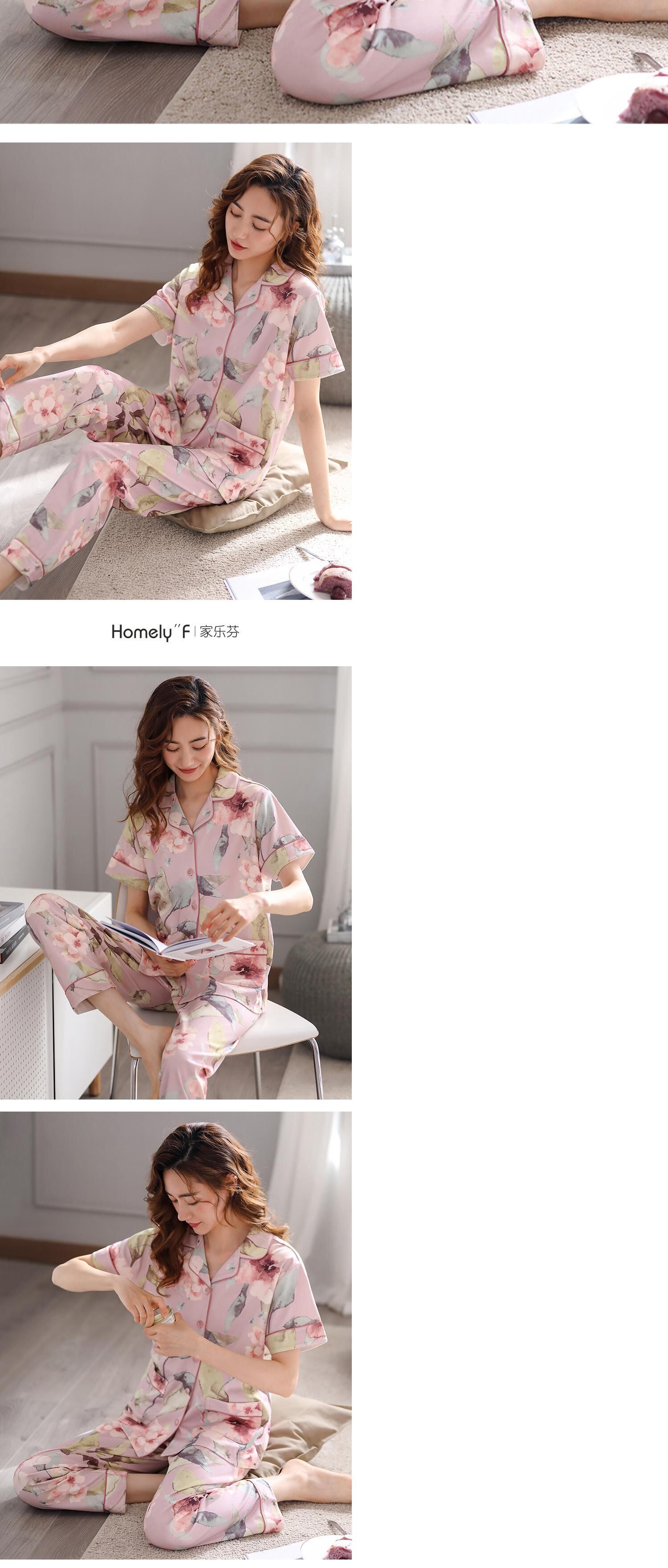 Carrefineパジャマレディースサマーコットン半袖パンツホームサービスサマーシンコットン中年マザースーツ jial10165283659