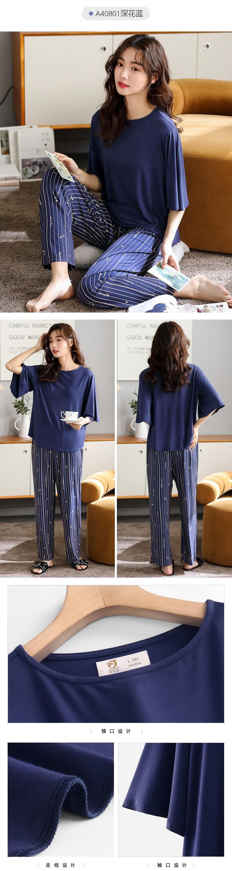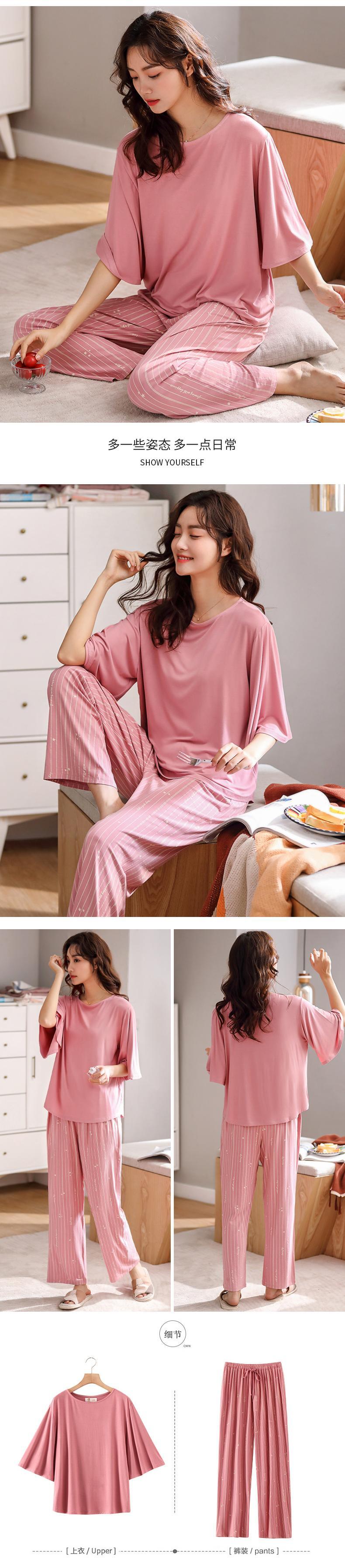 パジャマ春夏薄手春秋モーダルコットンシルク長袖七分袖春のホームウェアレディーススーツ jial56851056590
