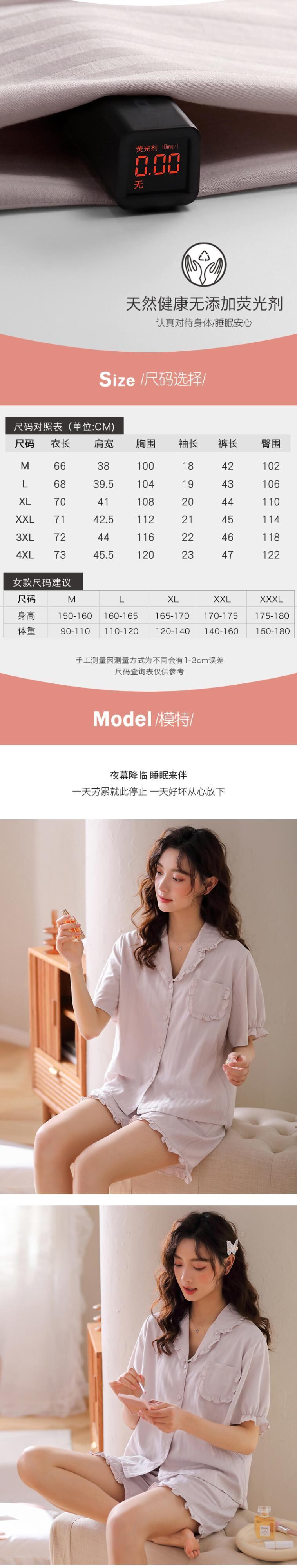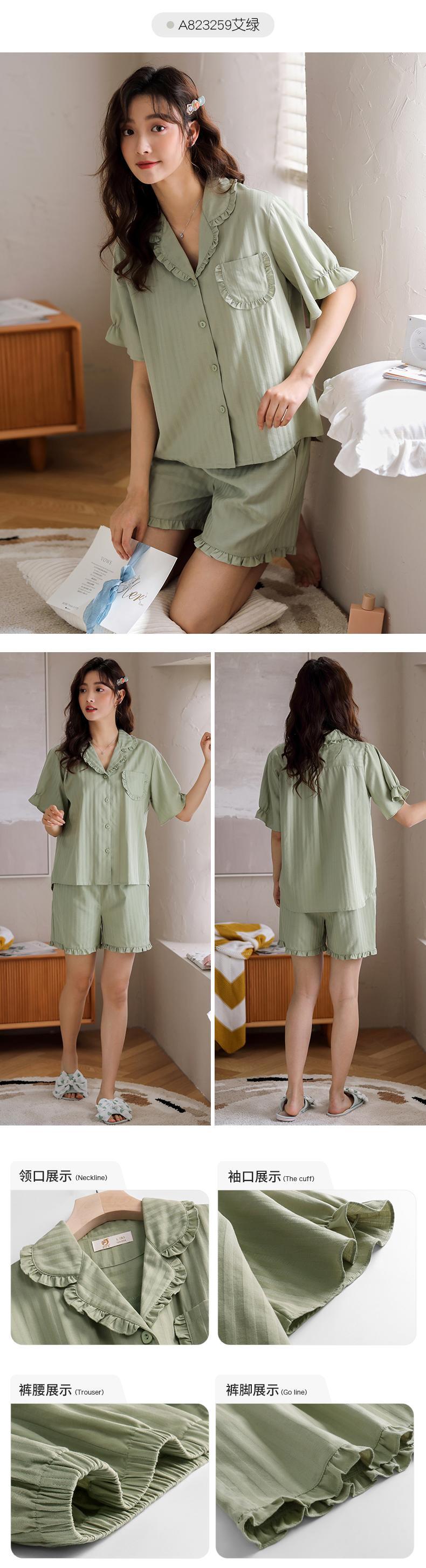 ウーブンコットンガーゼパジャマサマーコットン半袖ショーツホームウェアサマーウィメンズシンコットン jial55263634342