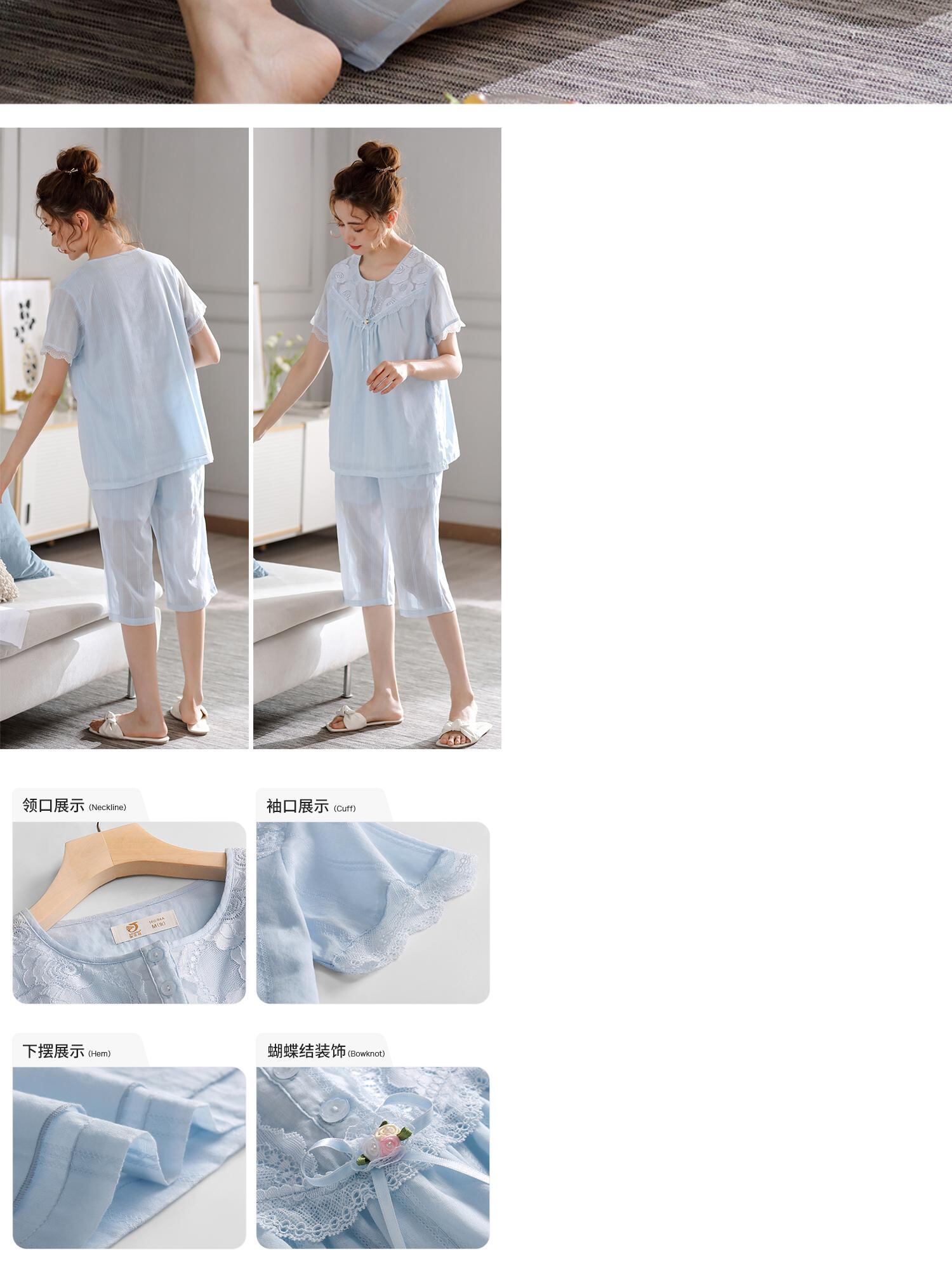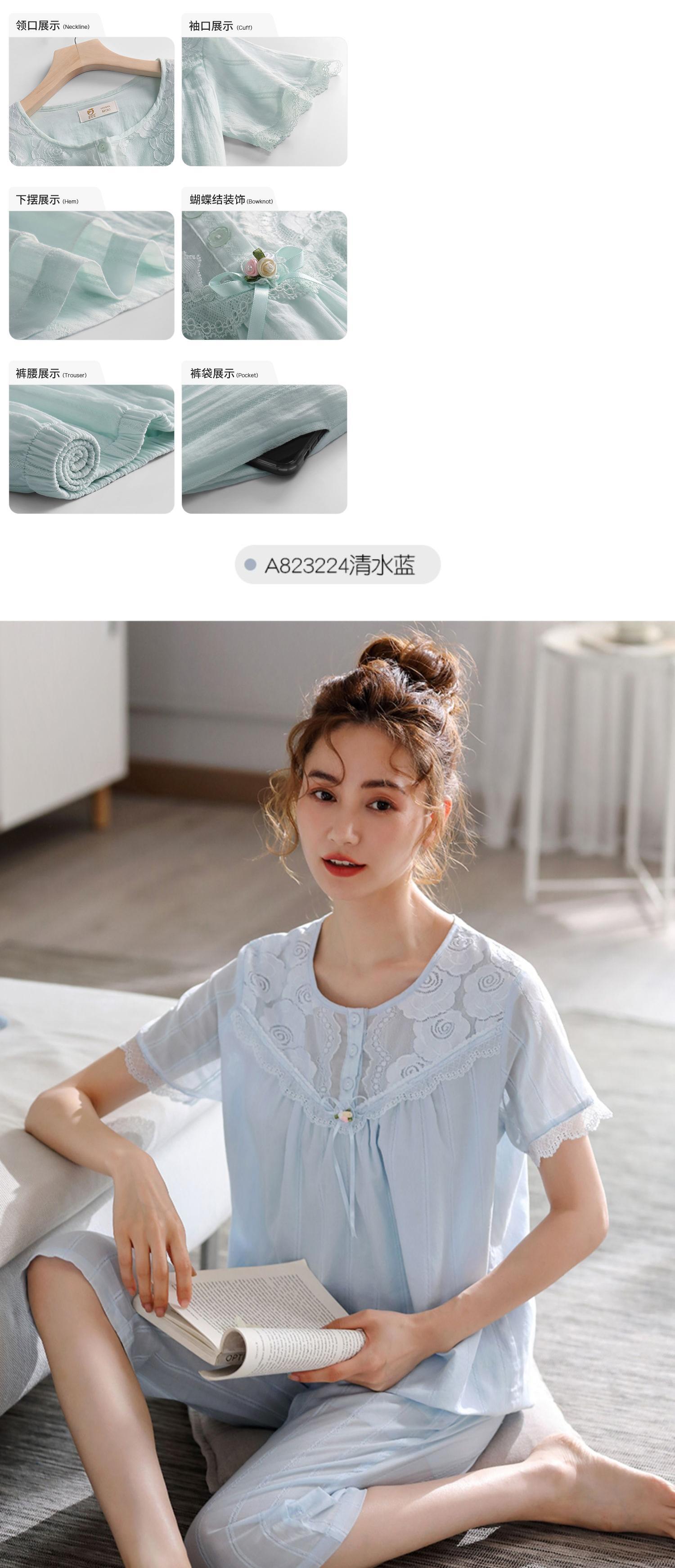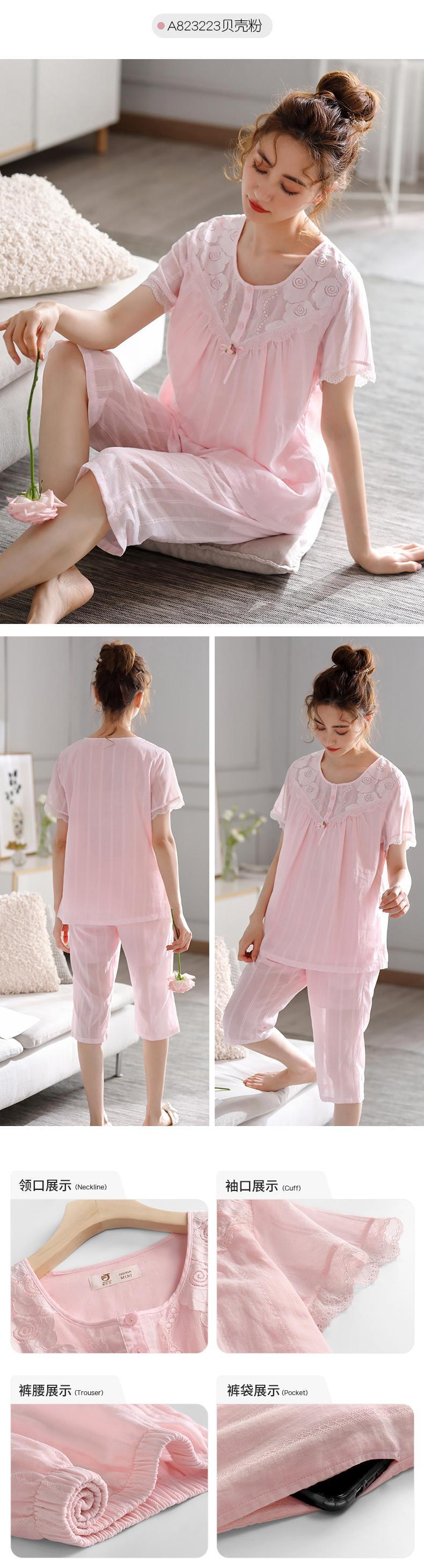 綿ガーゼパジャマレディースサマー半袖ショーツコットンホームウェアサマーコットン薄身ママラージサイズ jial68921345190