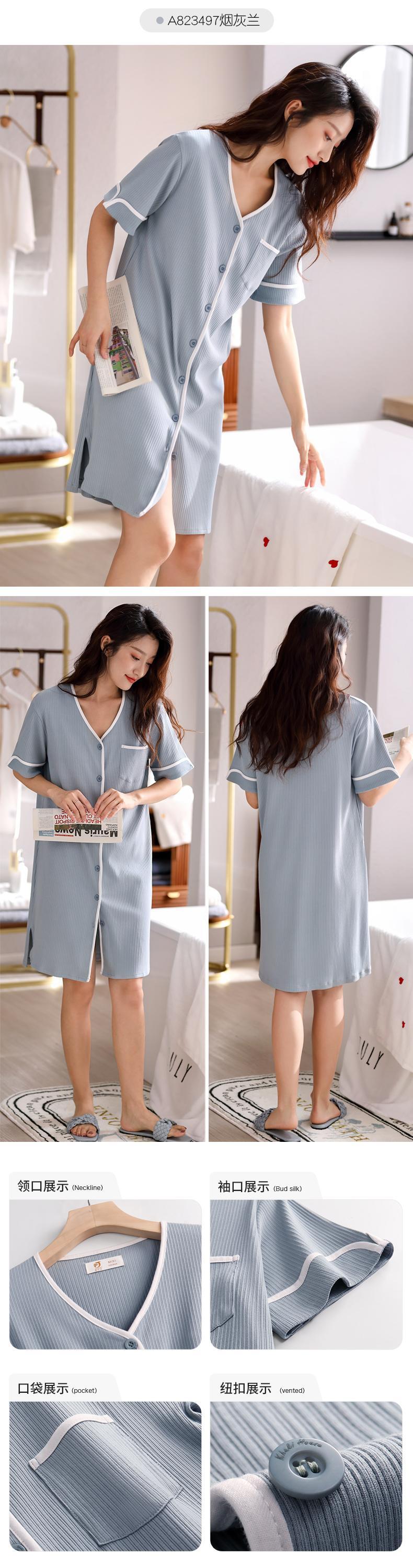 ネグリジェパジャマ夏半袖夏薄シャツカーディガンロングルースプラスサイズのホームウェア jial22879585523