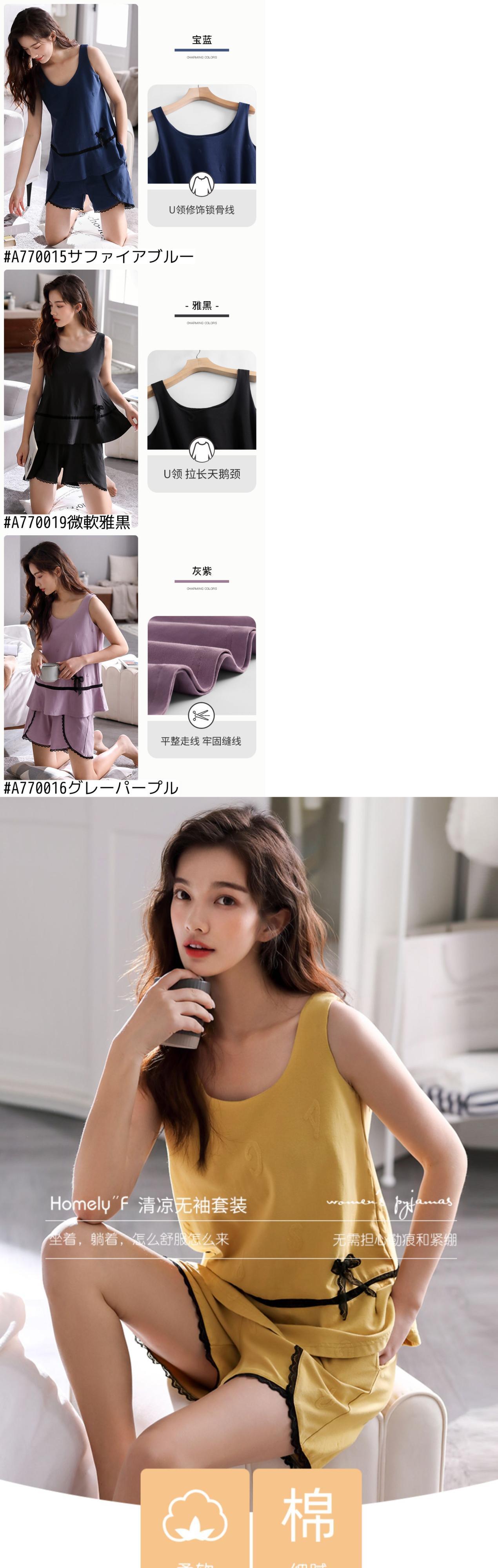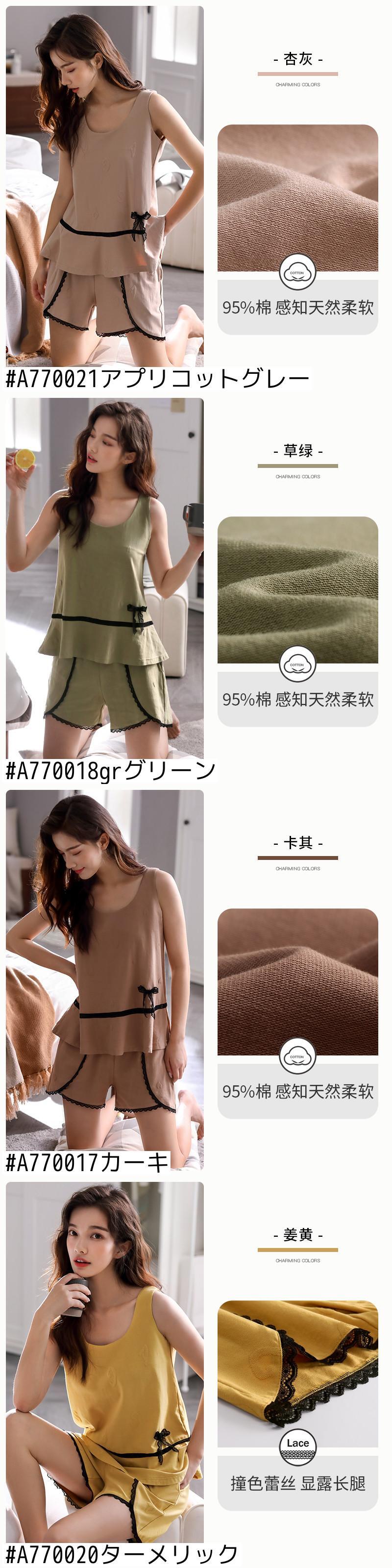 Carrefineパジャマサマーコットンベストノースリーブショーツホームウェアサマーシンコットンスーツ jial69198690065