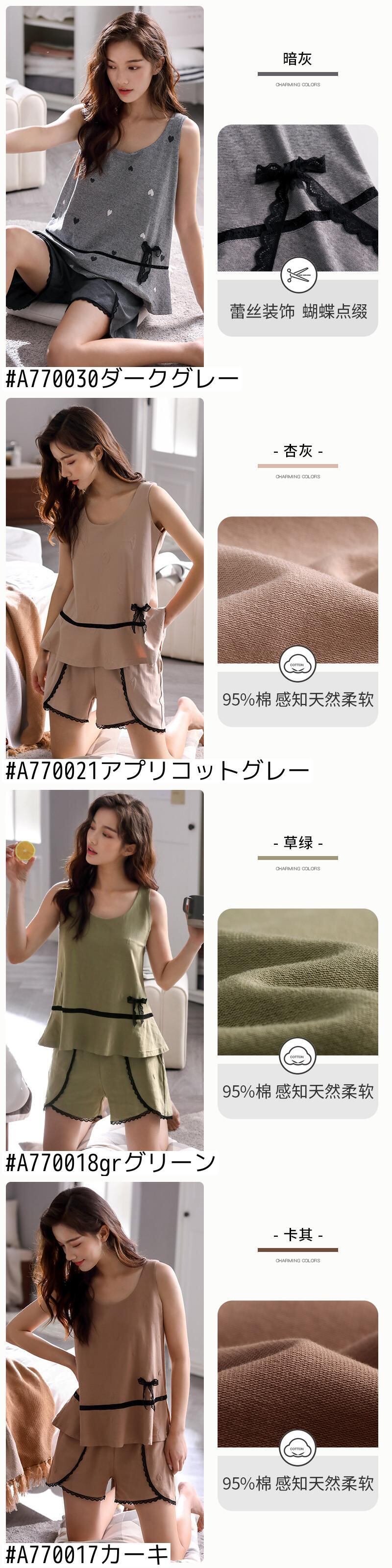 パジャマサマーコットンベストノースリーブショーツホームウェアサマーシンコットンかわいいツーピーススーツ jial90807336803