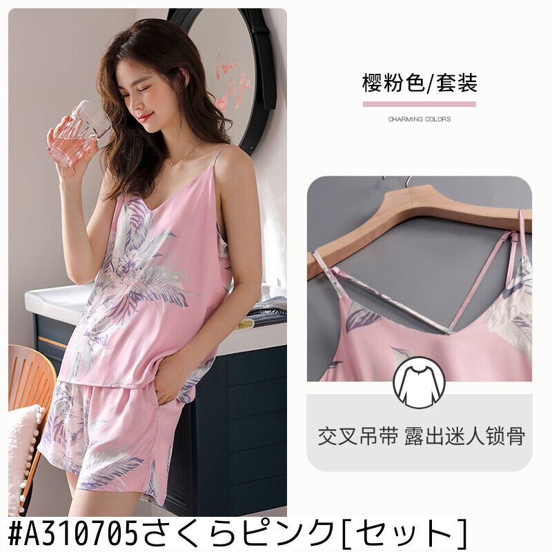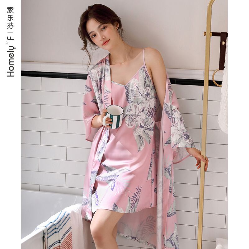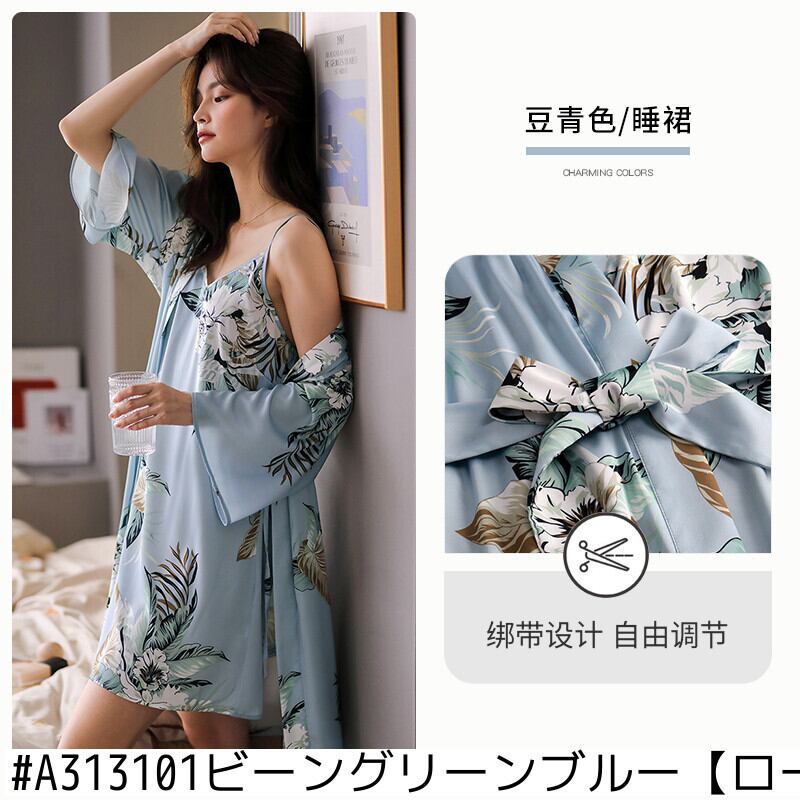 パジャマレディース春と秋のアイスシルクバスローブネグリジェ夏ロングシミュレーションシルクサスペンダーナイトドレスセクシーなツーピーススーツ jial49050380169