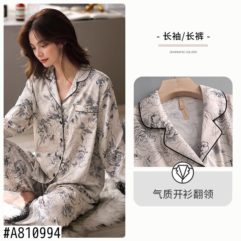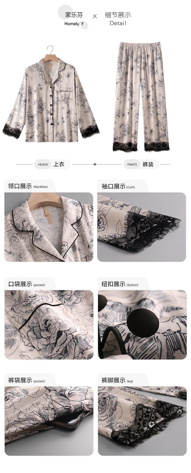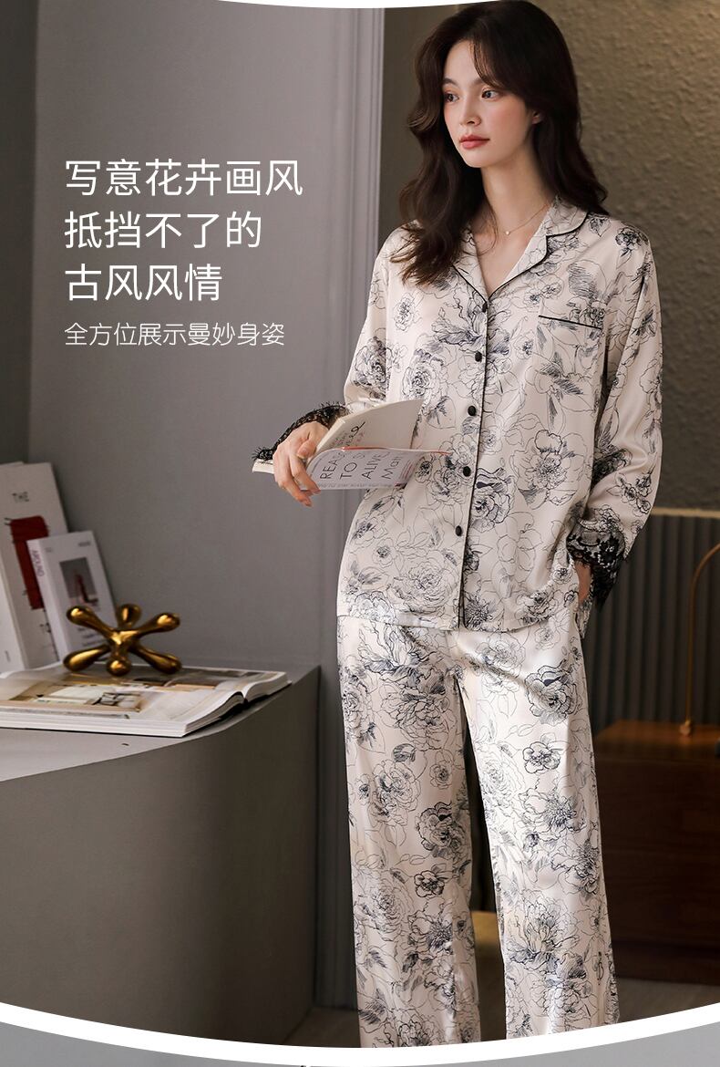 Carrefineパジャマレディース春夏シルクアイスシルク長袖家庭服春秋薄手シミュレーションシルクツーピーススーツ jial21797861407