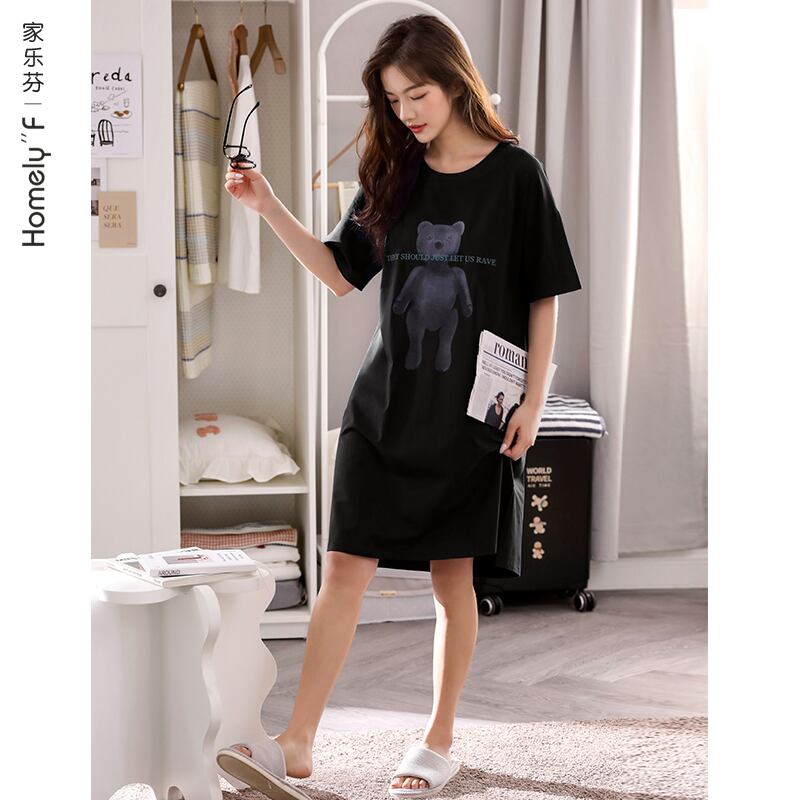 パジャマレディース夏夏綿半袖ネグリジェバージョンプラスサイズは家の外で着用することができます薄いドレスを着用してください jial97729443414