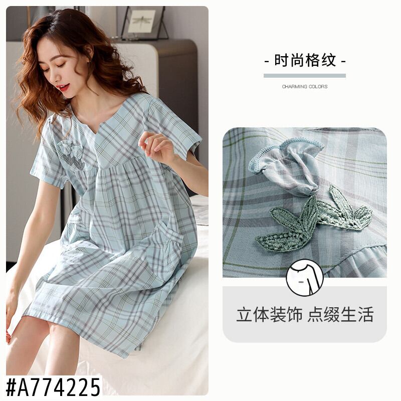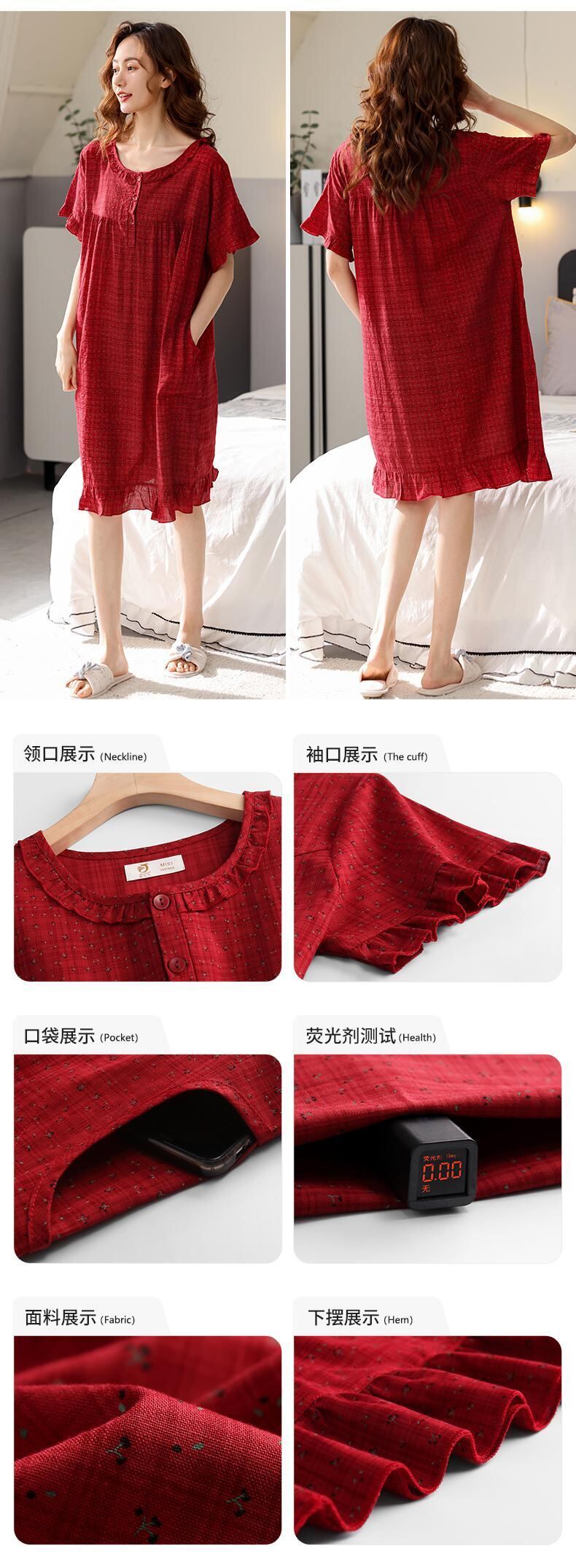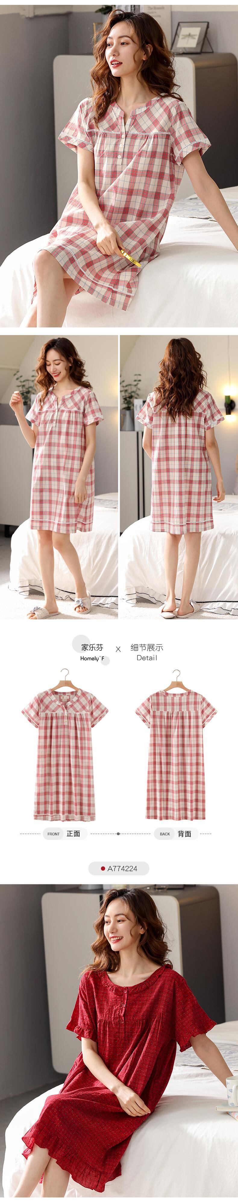 特別な織り綿ガーゼネグリジェレディースパジャマ夏夏綿半袖薄手の綿ミッドスカートホームサービス jial32386210840