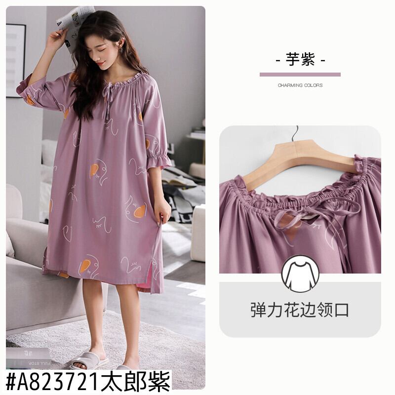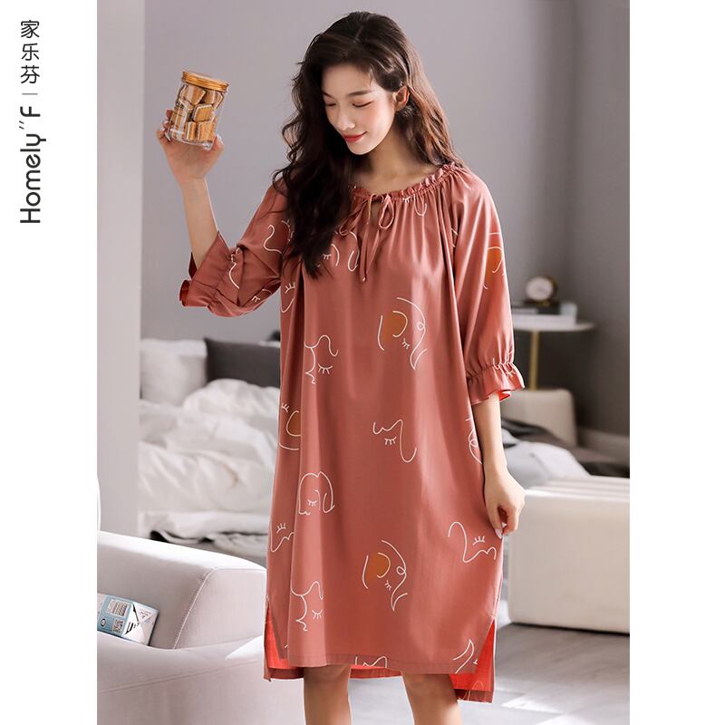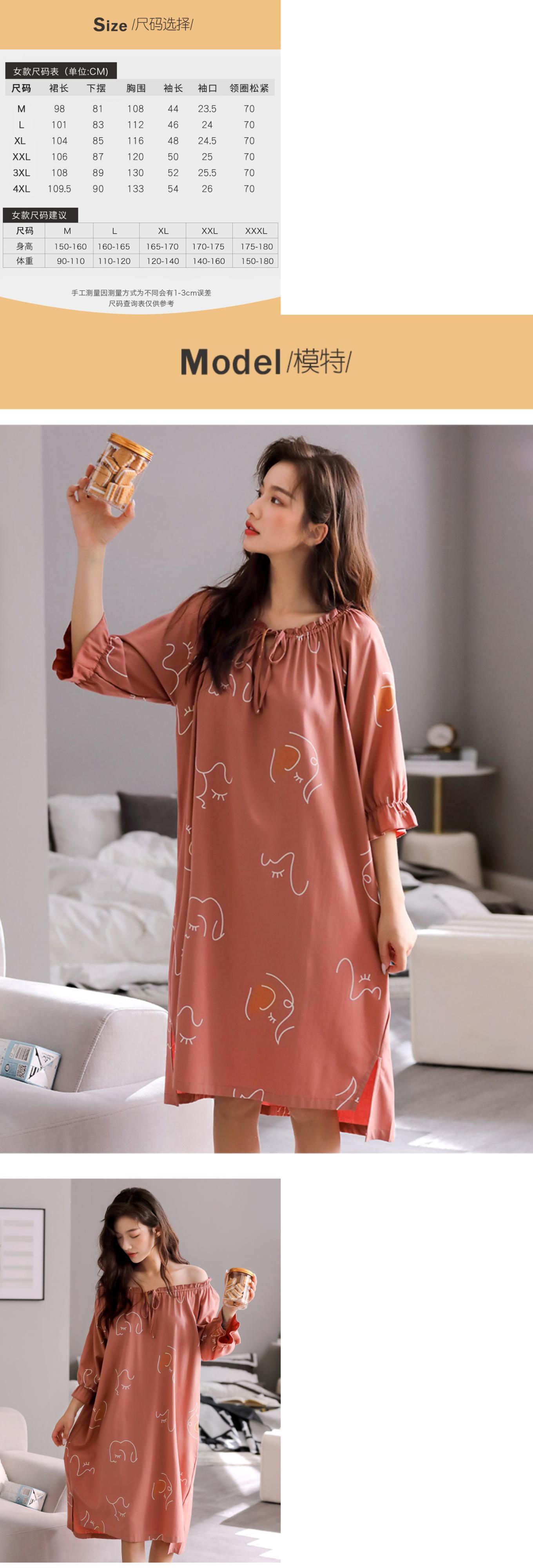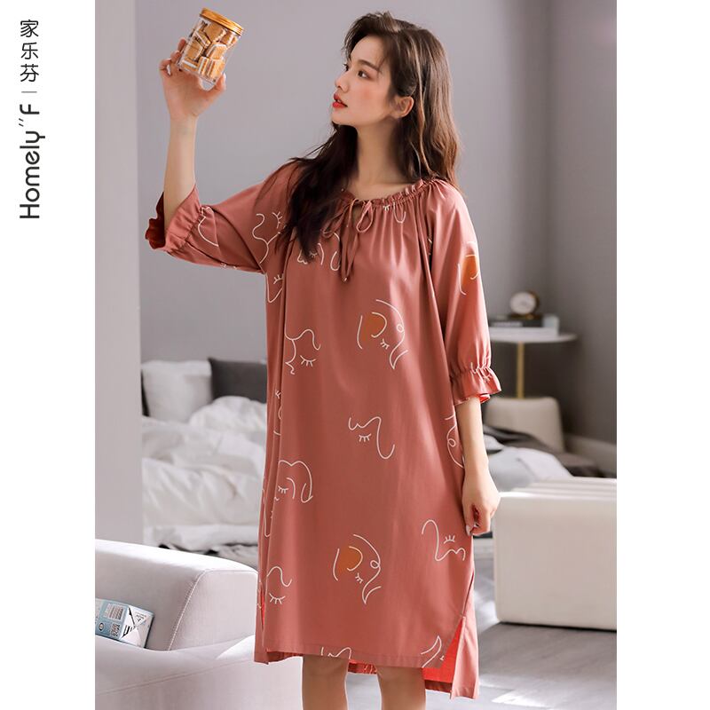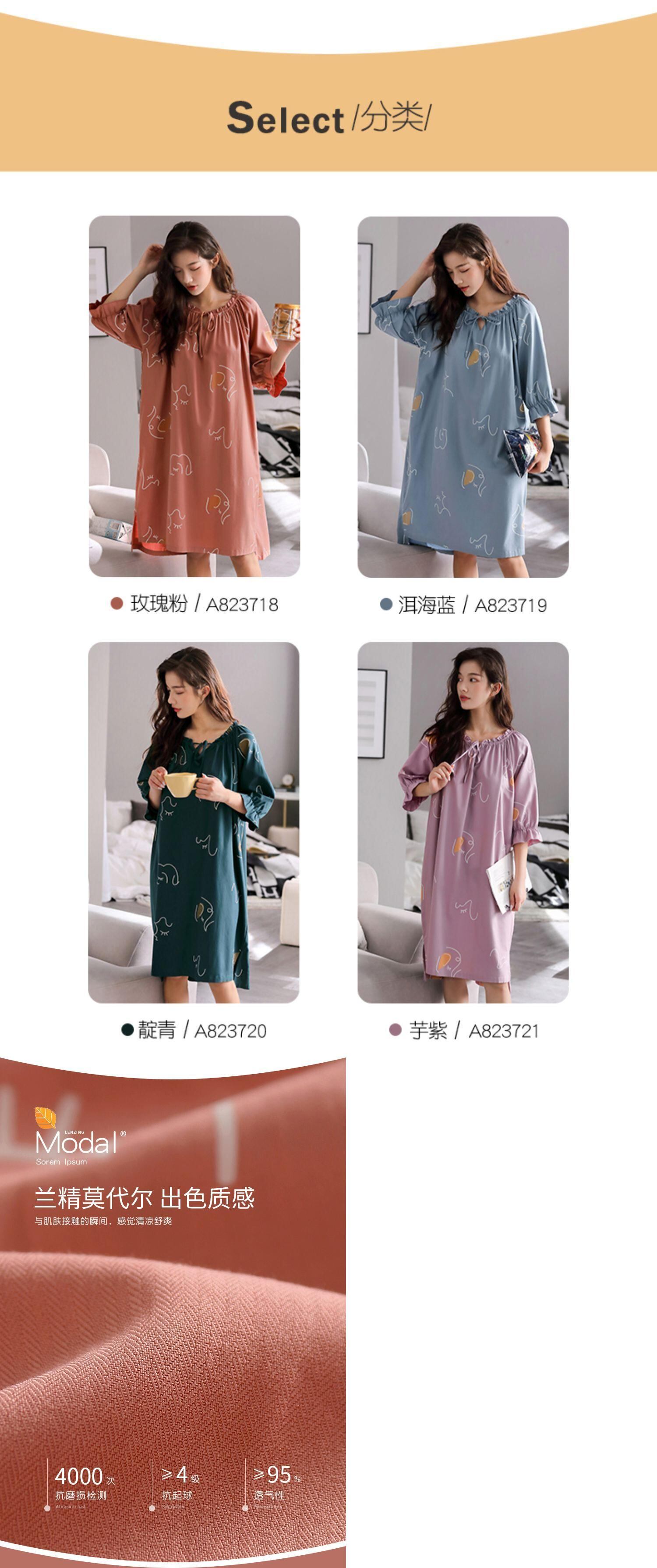 Lenzingモーダルナイトドレスレディースナイトウェアスカート春と夏のアイスシルク薄手のセクション春と秋のミドル丈スリーブ七分袖ホームウェア jial1839598278