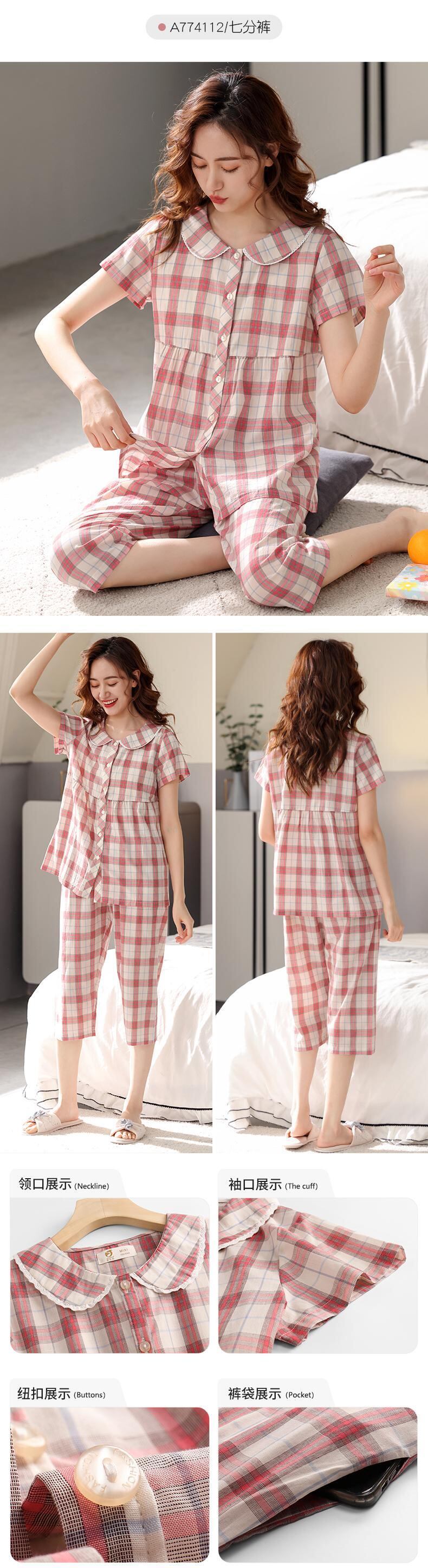 【特典】綿ガーゼパジャマレディースサマーコットン半袖ショーツ家庭服夏薄綿 jial80666226331
