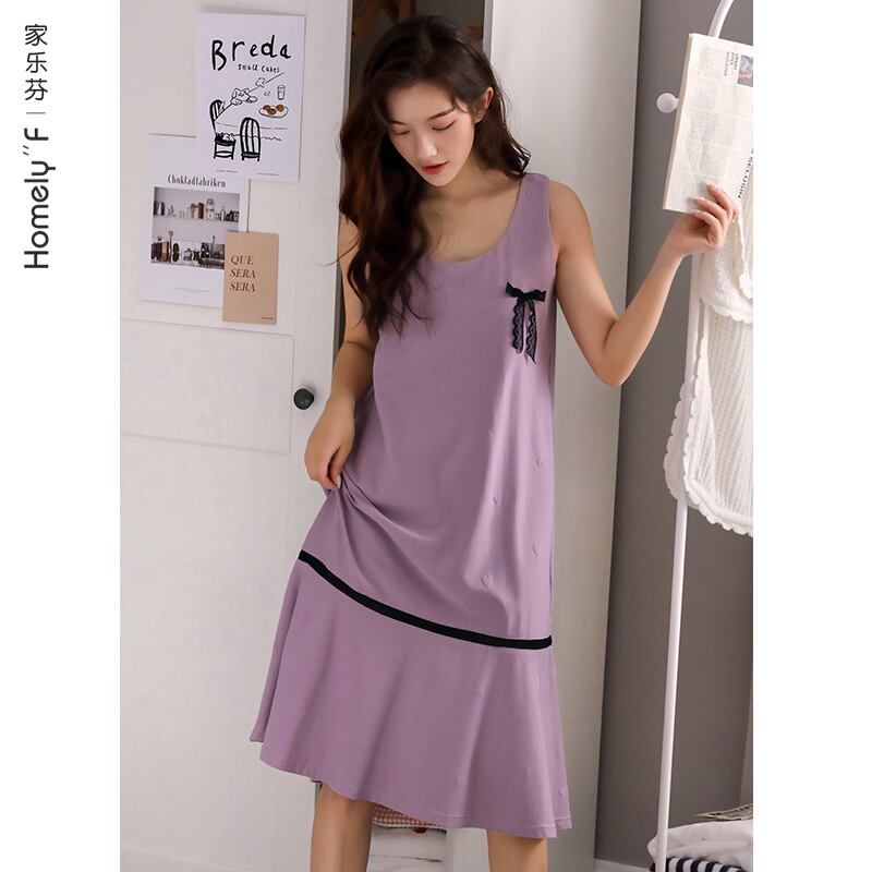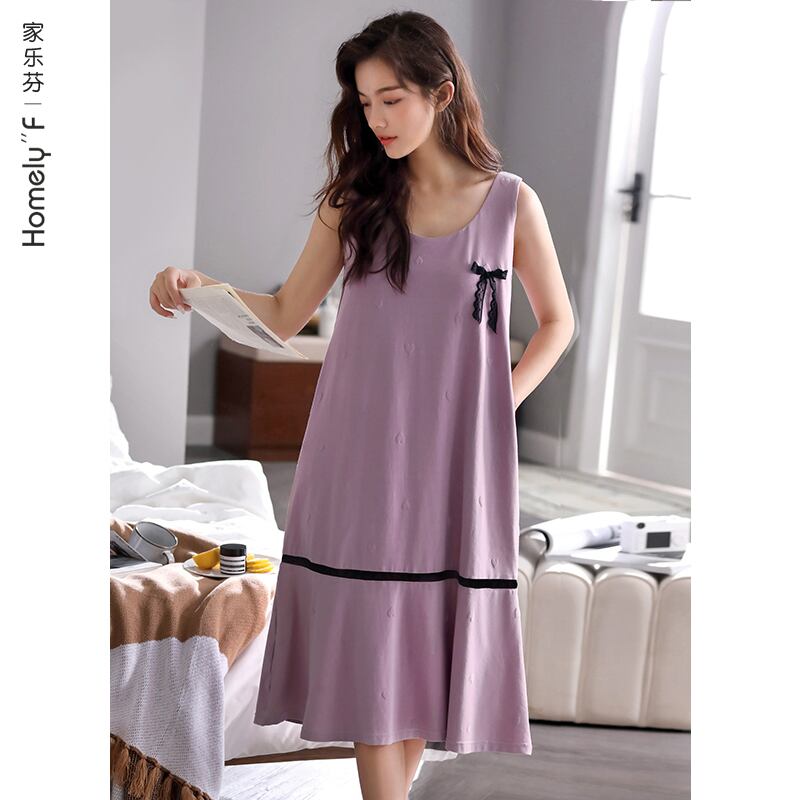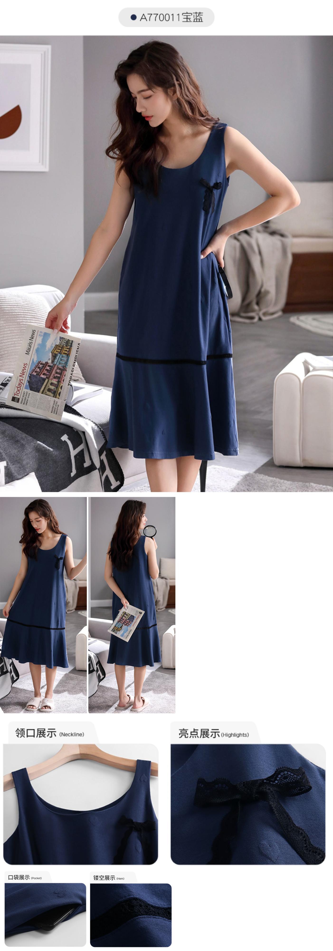 【ライクラコットン】ネグリジェレディースパジャマ夏夏コットンベストノースリーブワンピースロングルーズラージサイズ jial51147515498