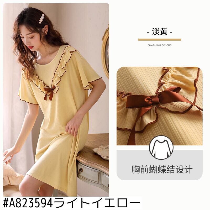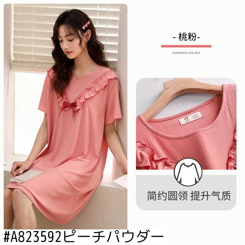 2021年の新しいナイトドレスレディースパジャマ夏夏アイスシルク薄手の半袖モーダルコットンシルクミッドスカートドレス jial99997688383