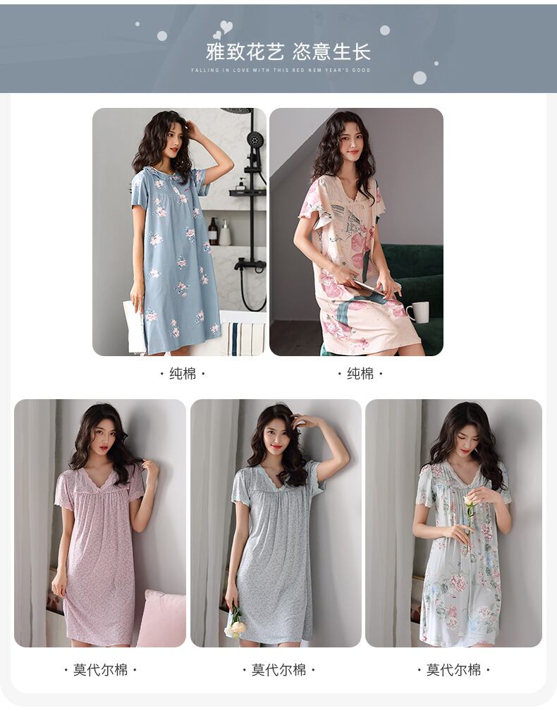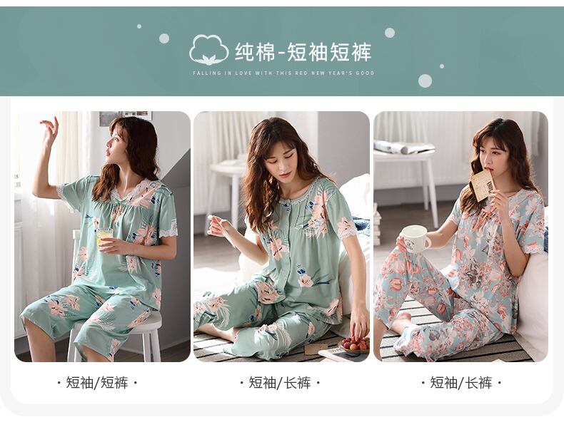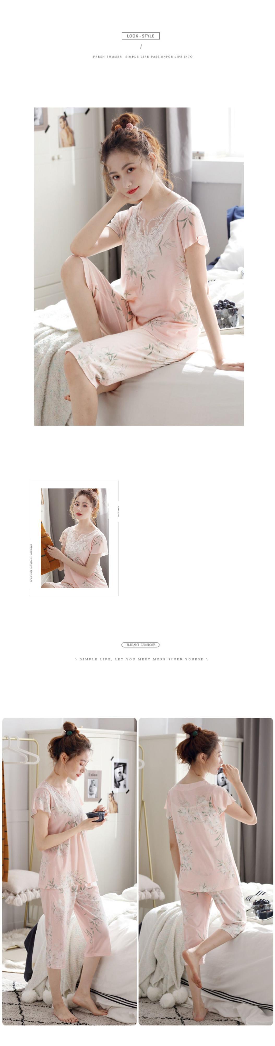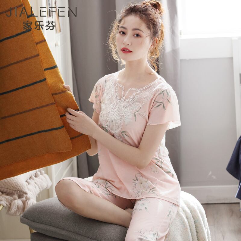 パジャマサマー半袖モーダルコットンシルクホームウェアサマーシンルーズラージサイズママツーピーススーツ jial61564652570