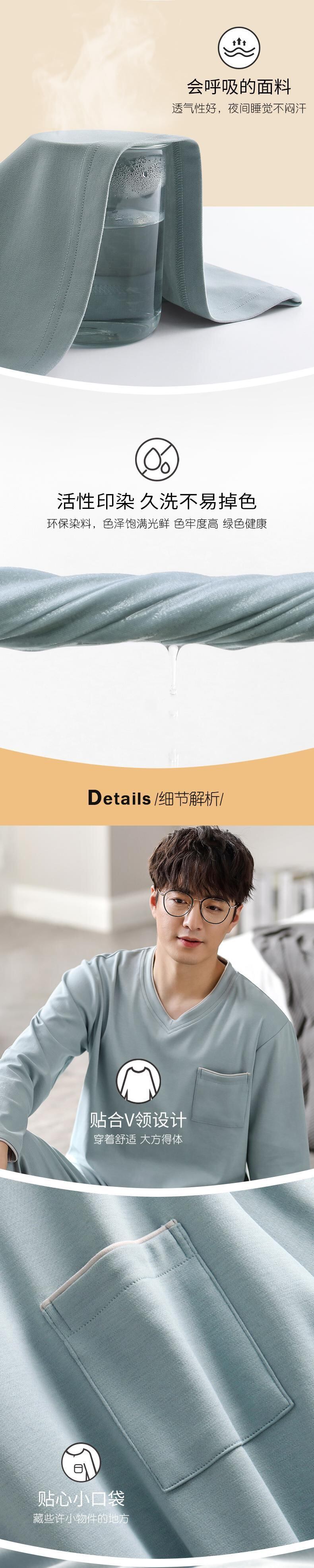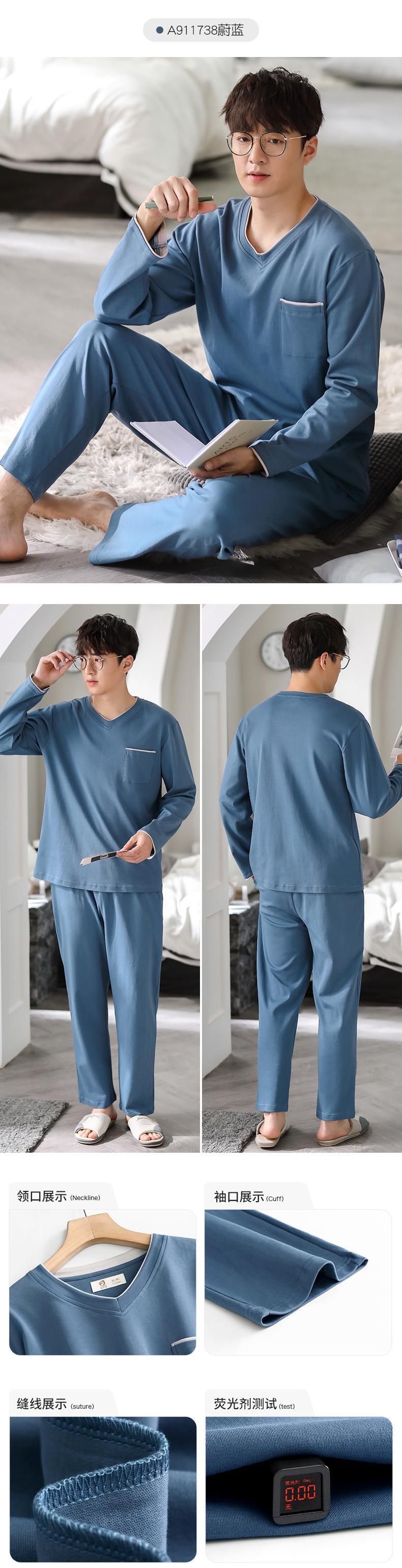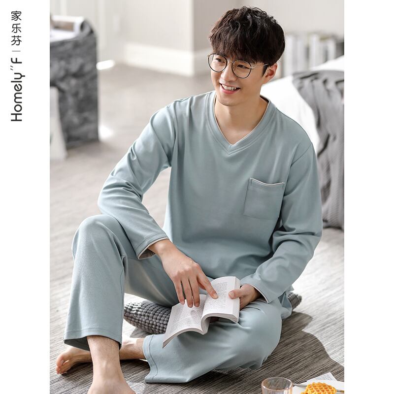 Carrefineパジャマメンズ春秋秋コットン長袖ラウンジウェアメンズコットンフォーシーズンカジュアルスーツ jial8907947209